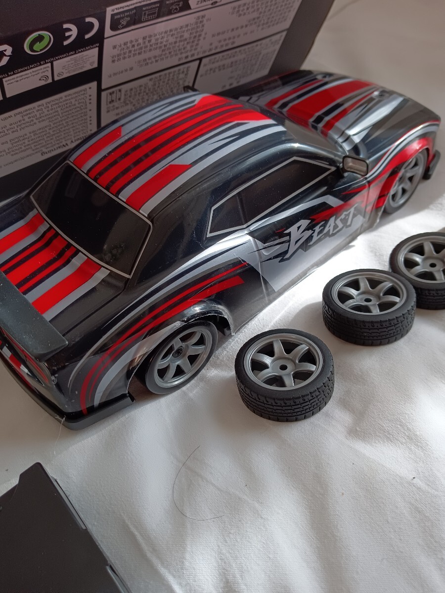お疲れ様です。こちらの高性能ラジコンドリフトカーは、完全新品未使用品です。