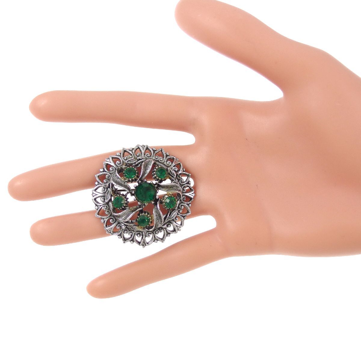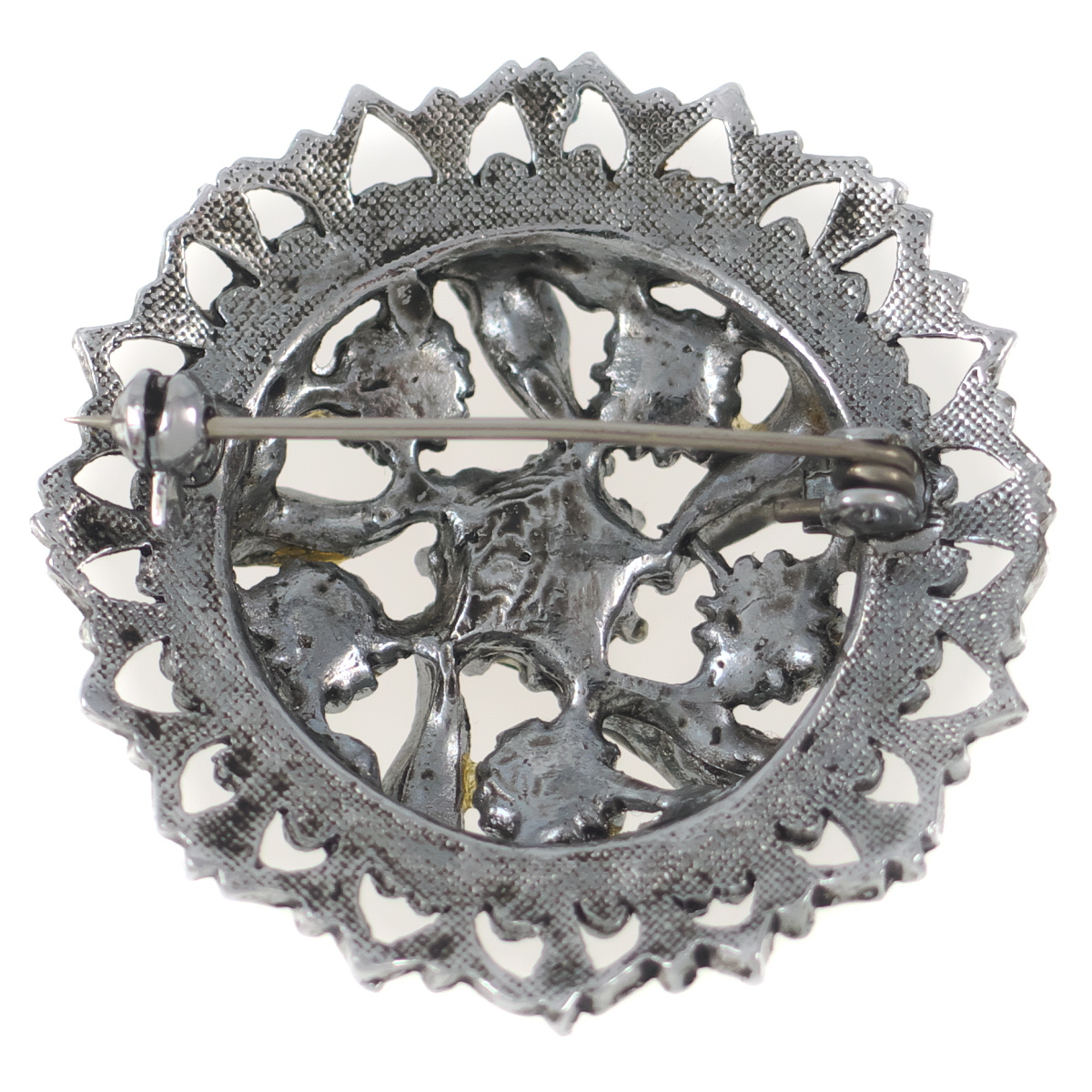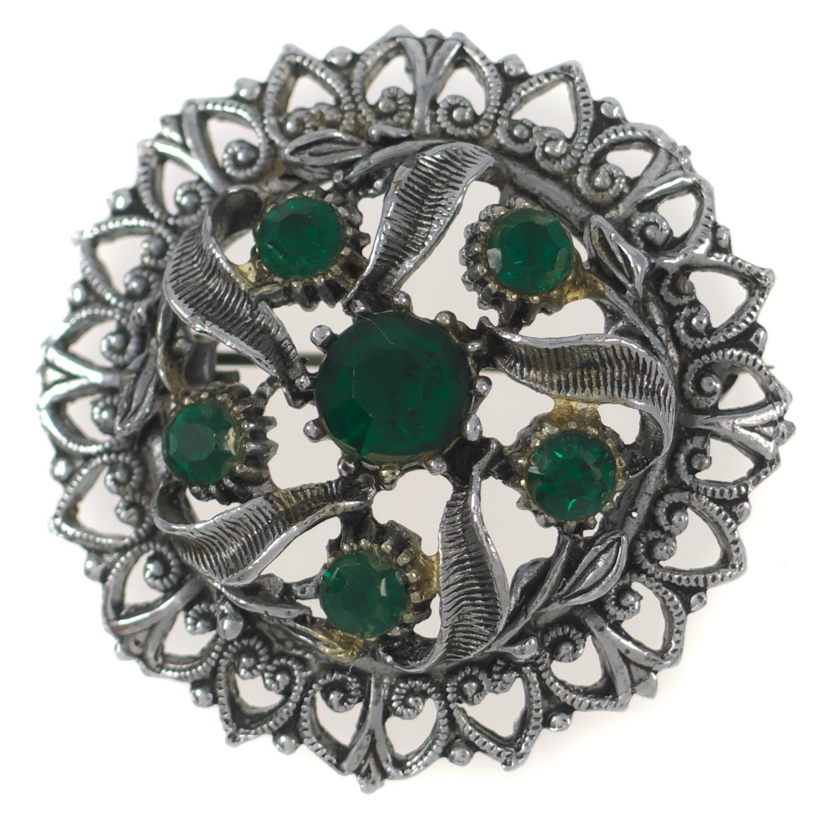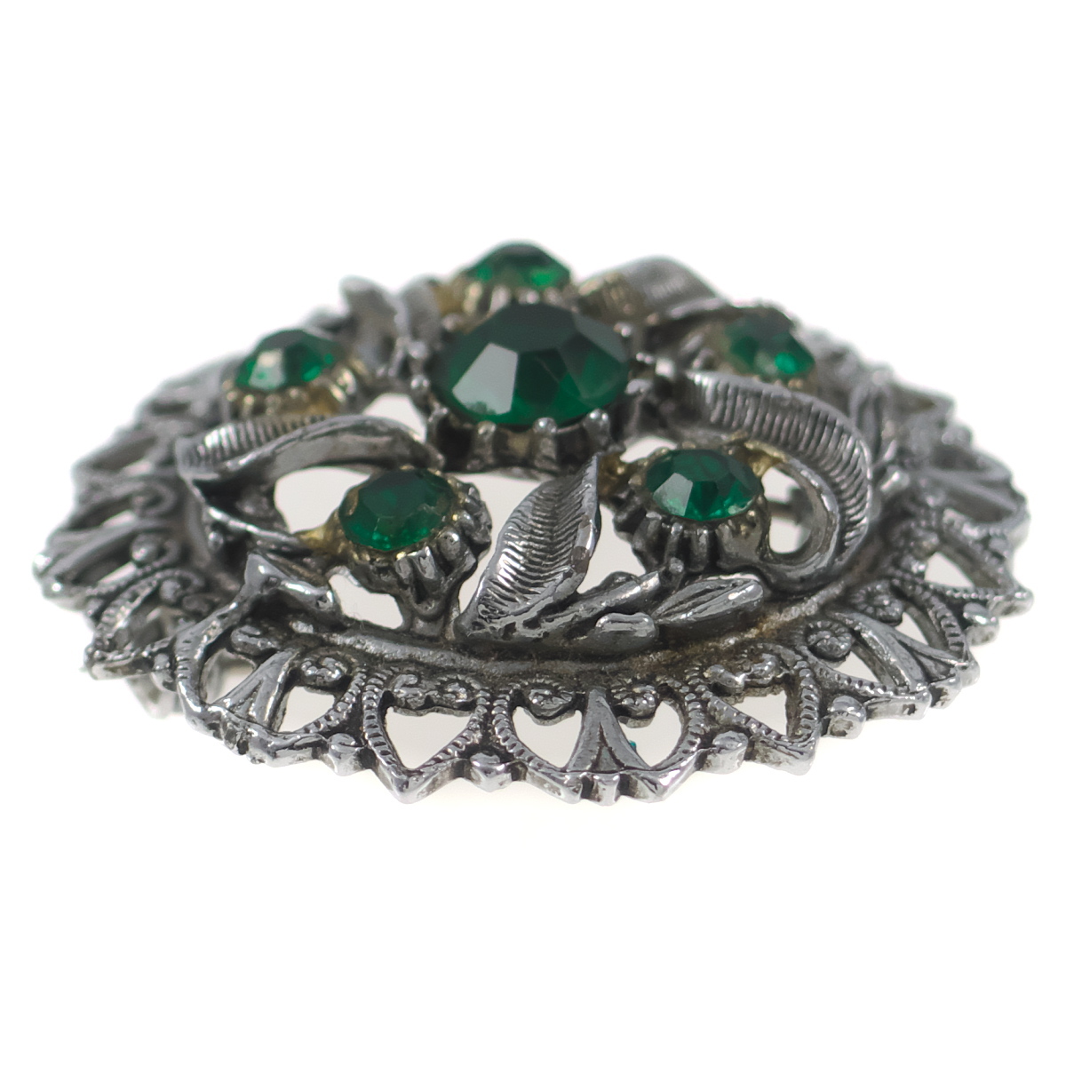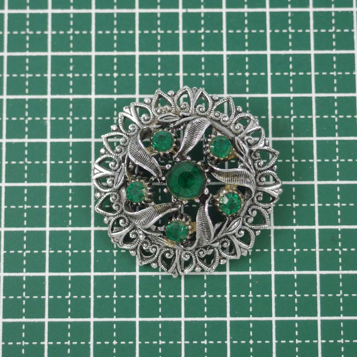 UK2796◆ ボタニカルモチーフ グリーン系ラインストーン ケルト 英国 イギリス ◆ ヴィンテージブローチ