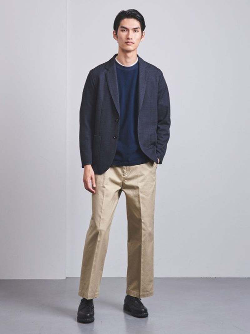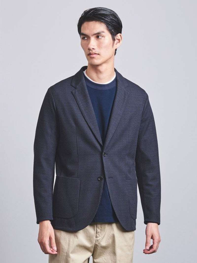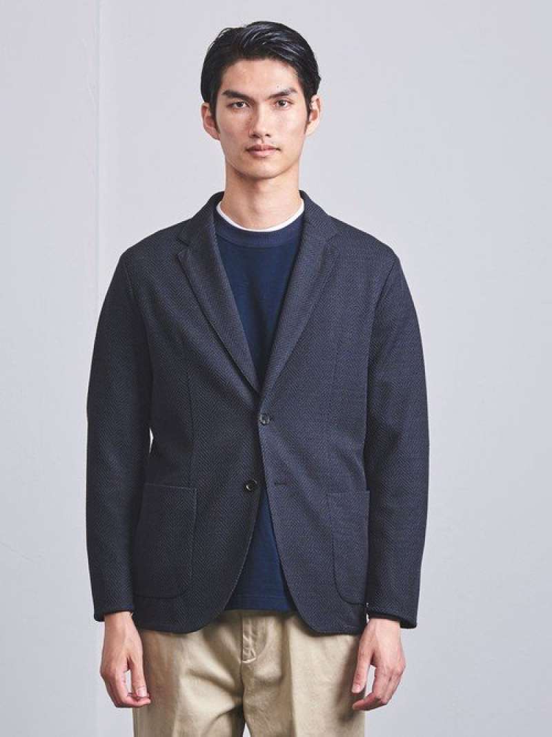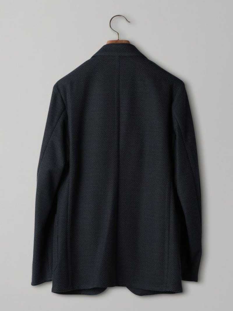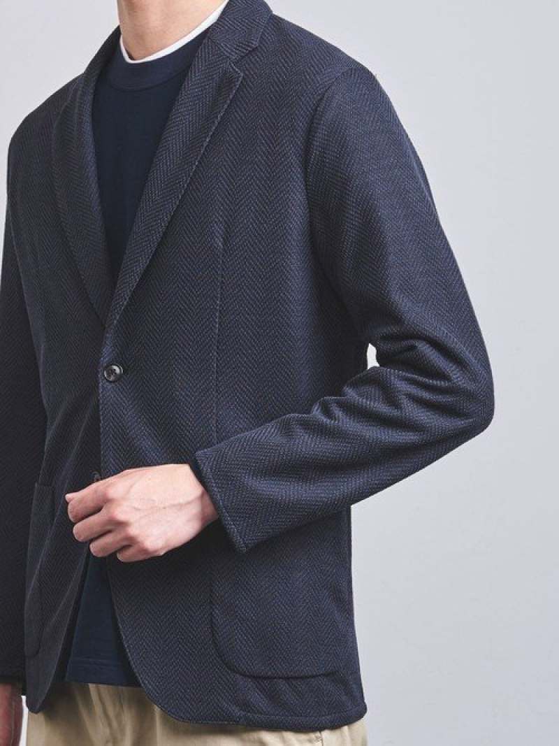 UA クールマックス ヘリンボーンジャケット。美品。定価26300円。。機能素材COOL MAX仕様。上品なヘリンボーン生地で仕立てられたカットソージャケット。ゴージラインを低めに設定したノッチドラペルが落ち着いた印象です。ネイビー。サイズ寸法(画像2)。