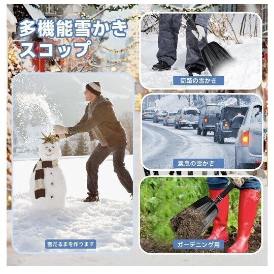 【様々なシーンで大活躍】車、家屋、庭や歩道の除雪に適している。シャベルヘッドは強靭なアルミニウム合金で包まれているため、雪が降っていないときには一時的にガーデニング・ショベルとしても使用できる。