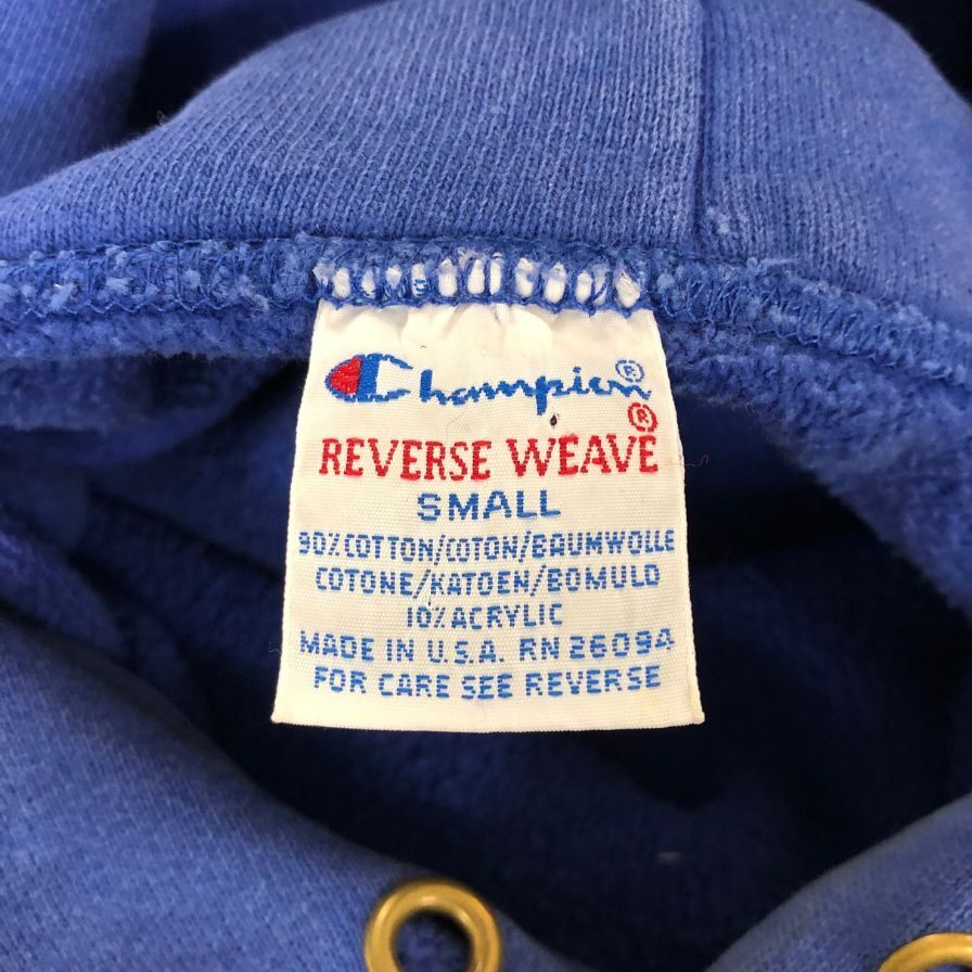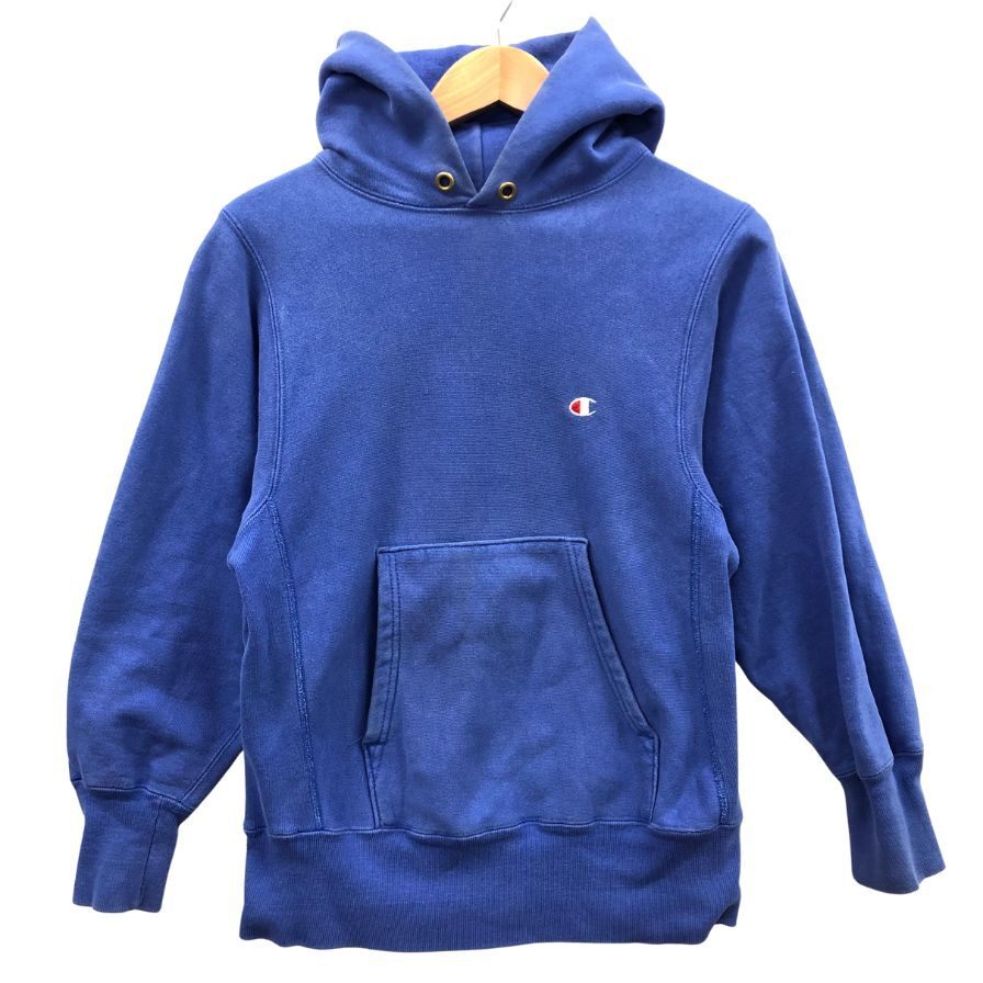 中古◆パーカー・フーディー チャンピオン リバースウィーブ 90S 刺繍タグ USA製 ブルー メンズ サイズS champion reverse weave 【AFB10】
