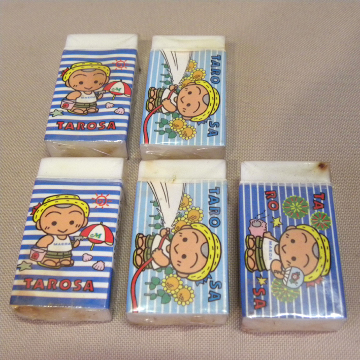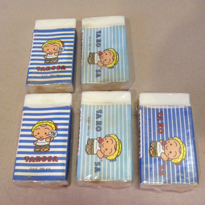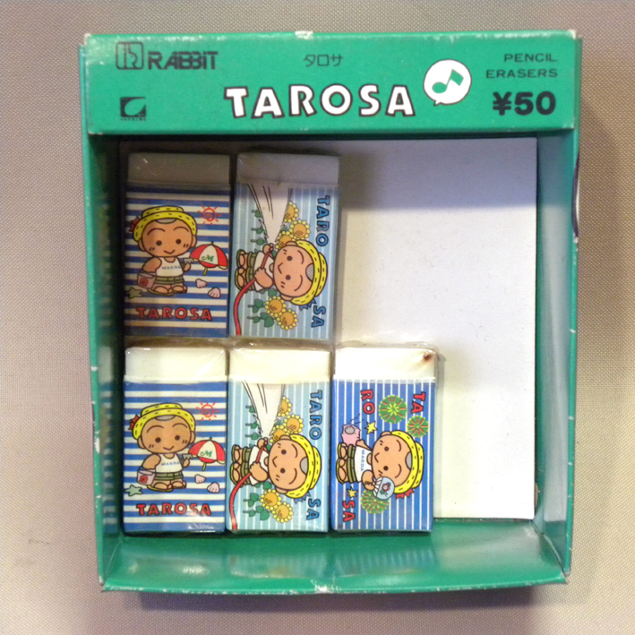 1980年代当時物、ラビット「TAROSA/タロサ 消しゴム」5個セット、箱付きです。