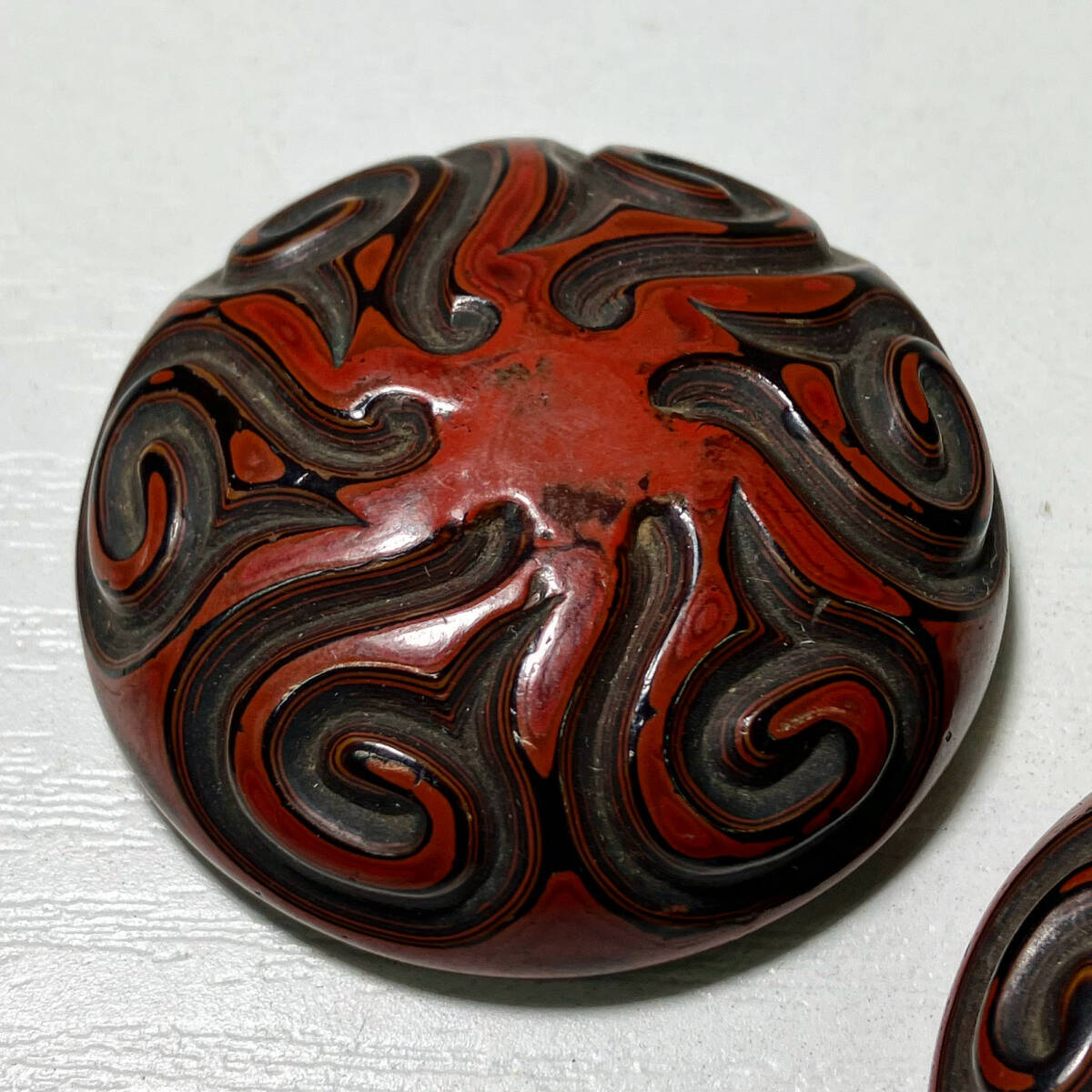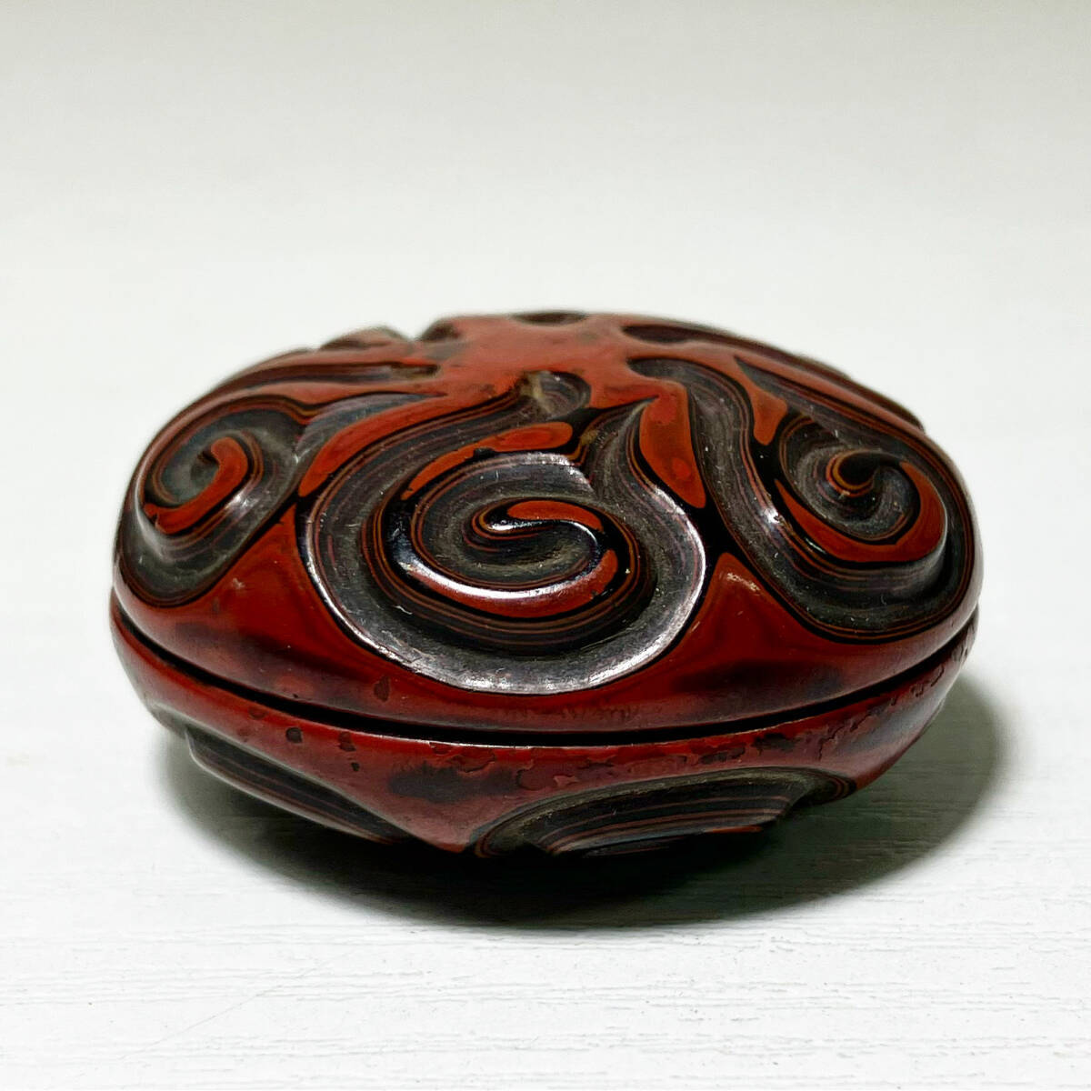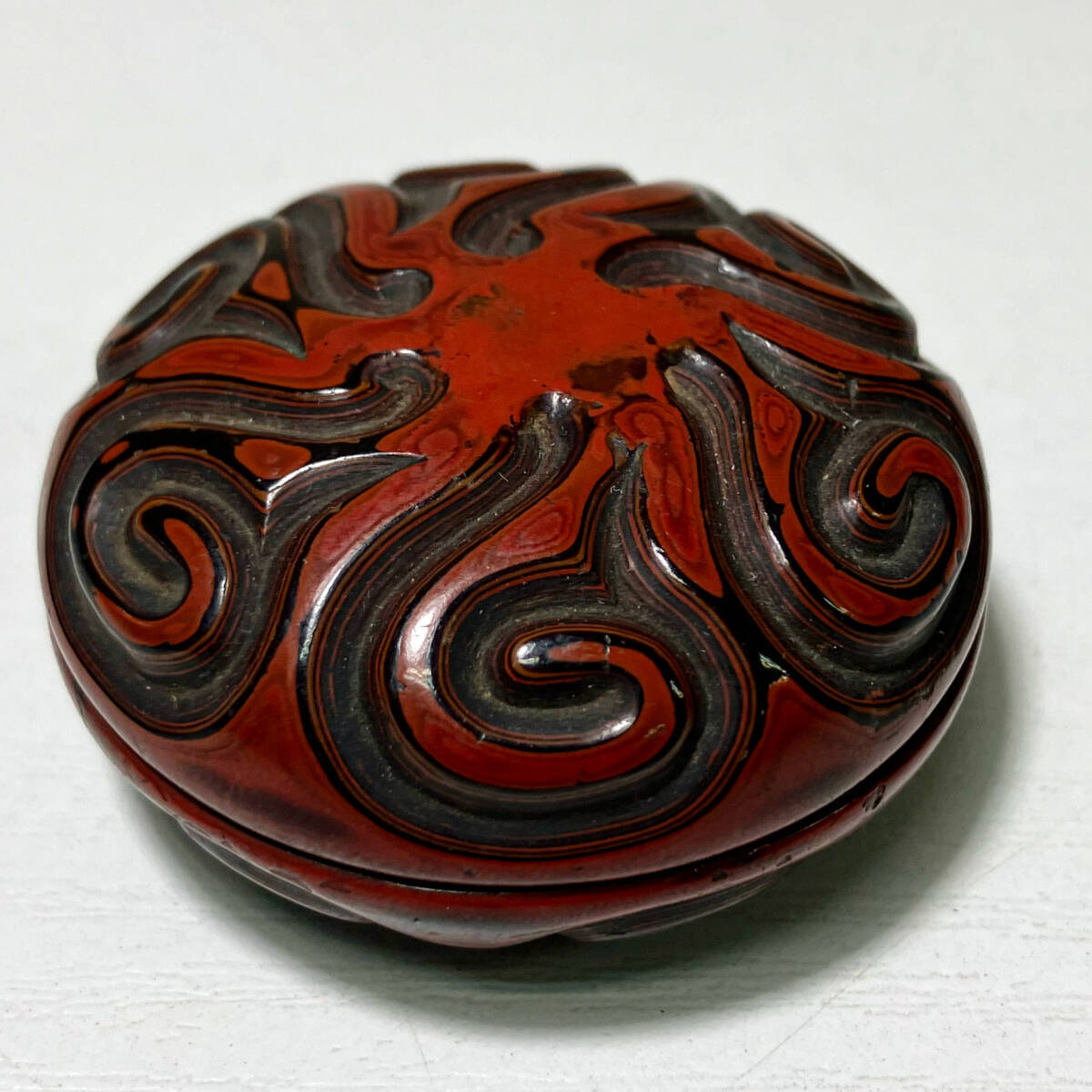 明代 倶利 堆朱香合 漆 直径:4.5cm 茶道具 古美術品