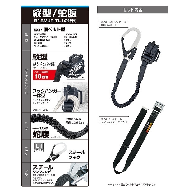 タジマ製の胴ベルト+ランヤードセット・胴ベルト用 蛇腹縦型L1 スチールベルトMセット のB1SMJR-TL1BKです。