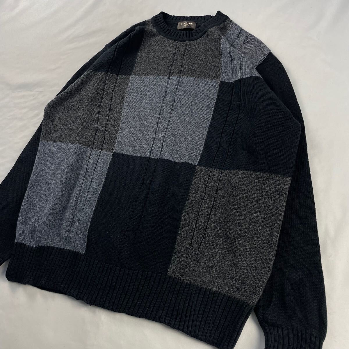 US Vintage 90s DOCKERS コットン100% モノトーン 立体 3D ケーブル編み 縄編み ブロック デザインニット