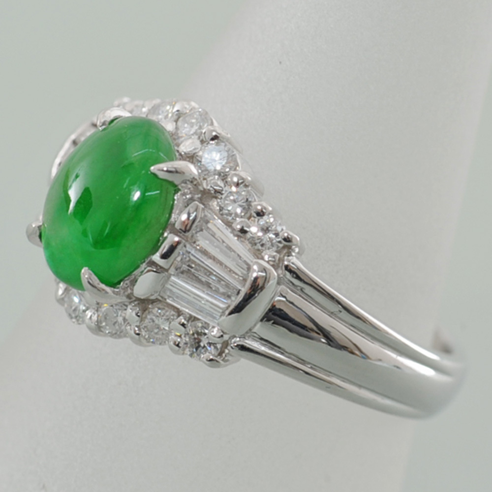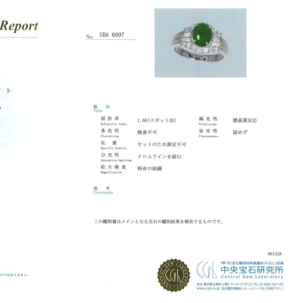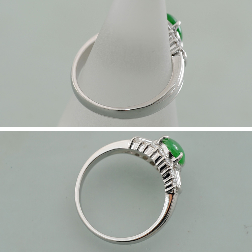 ● 【D31】 Pt900 プラチナ 天然ひすい 翡翠 メレダイヤ デザイン リング 指輪 中古品仕上げ済み 鑑別書付き