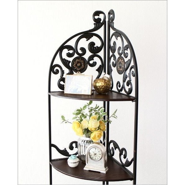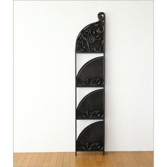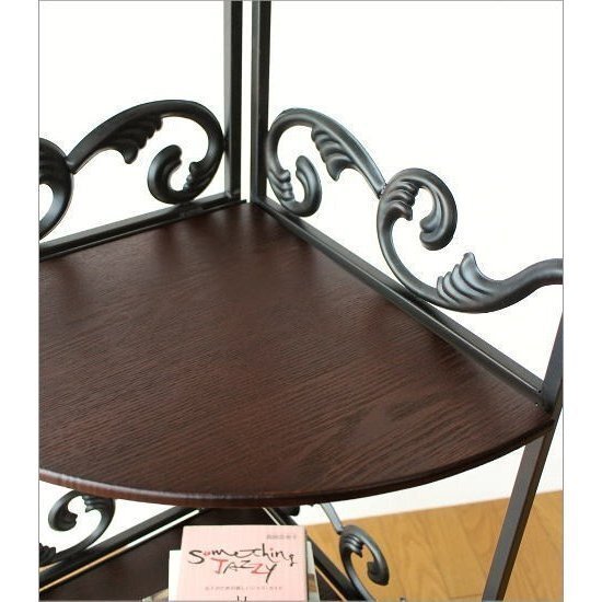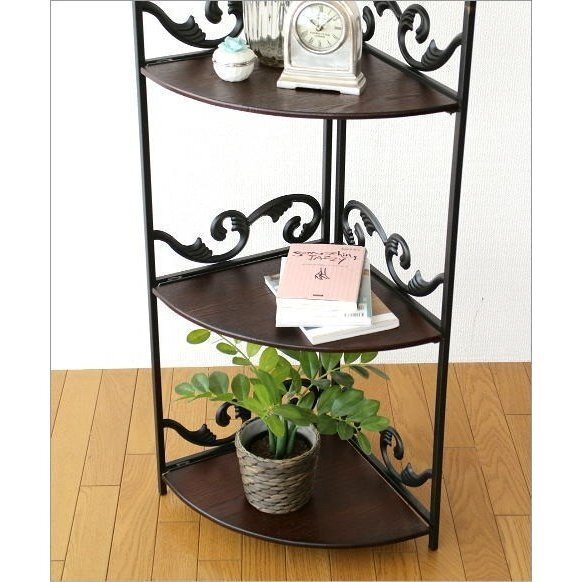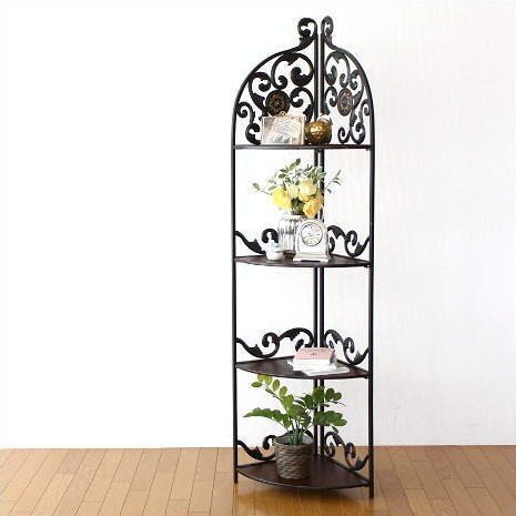 | 個性的なアイアン飾りのコーナー棚は 等間隔の4段棚で空間の高さがあるので フラワーベースや飾り物など素敵に飾れそうです 折り畳み式で模様替えしたいときや移動に便利です 商品名 : コーナー4段シェルフ エンブレム(kwt5237) 全体サイズ(cm) : 幅52×奥行37×高さ170 棚板のサイズ : 1辺が約35cmの扇形 棚板間の空間高さ : 37~39 棚板の厚み : 1 材質 : アイアン 木(合板) 重量 : 9kg 生産国 : 中国 ※塗装ムラを施して、アンティークな風合いを表現した商品です |