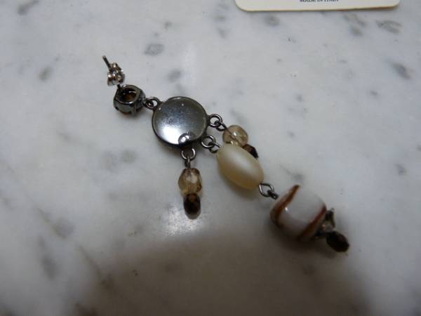 平置き:全長6.5cm、重さ:1つ6g、素材:ニッケルxプラx石 備考:お揃いでネックレス・ブローチ・ブレス・指輪もあります。MADE IN ITALY