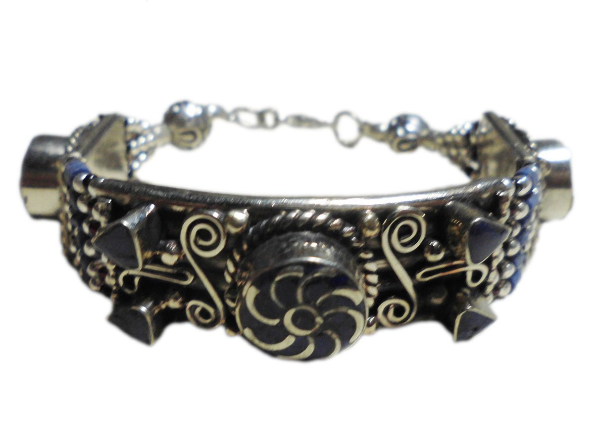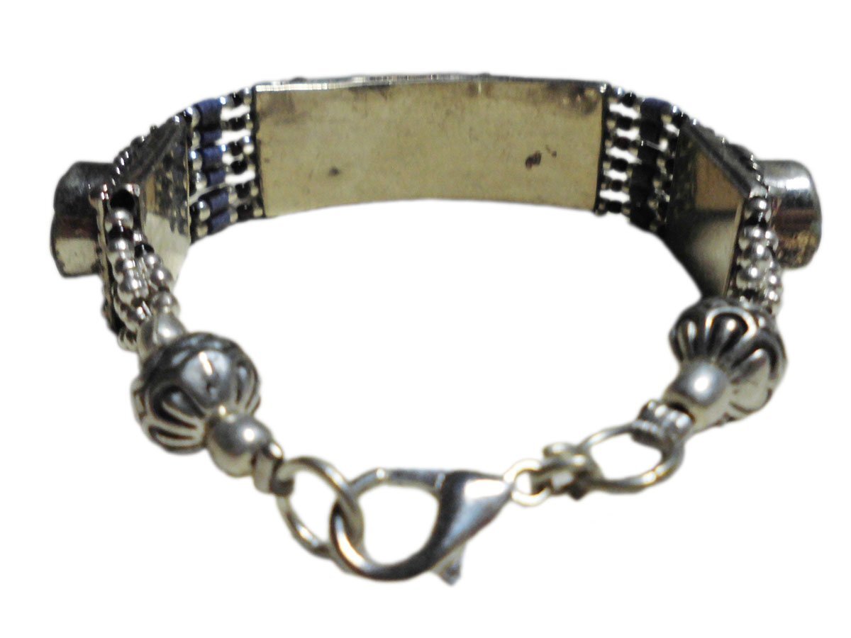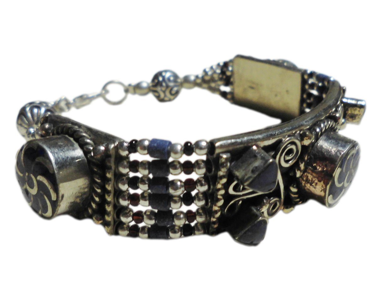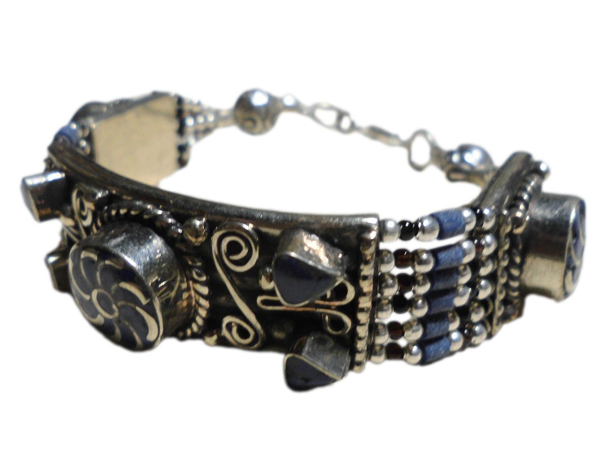 ■☆アジアン雑貨 ネパール銀職人 天然石メタル・ブレスレット ラピスラズリー(MTBR-6)