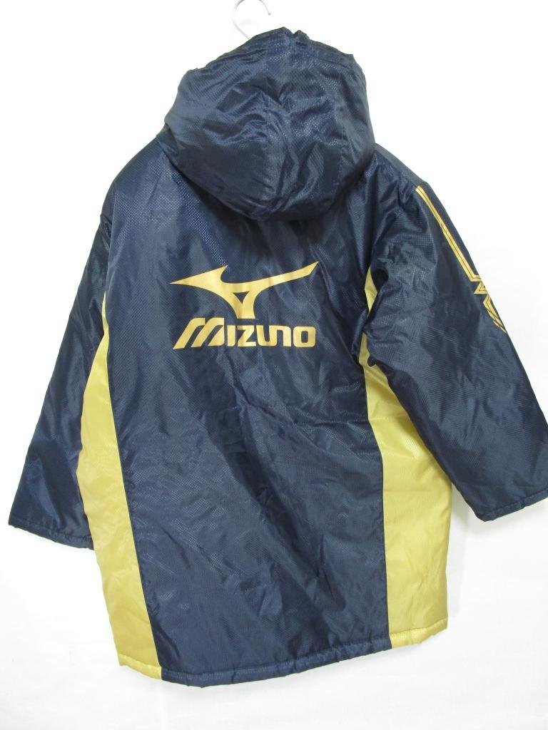 【送料込】 MIZUNO ミズノ 【メンズ】 コート ネイビー×ベージュ ベンチコート ミドル丈 中綿入り フード付き sizeM スポーツ/965654