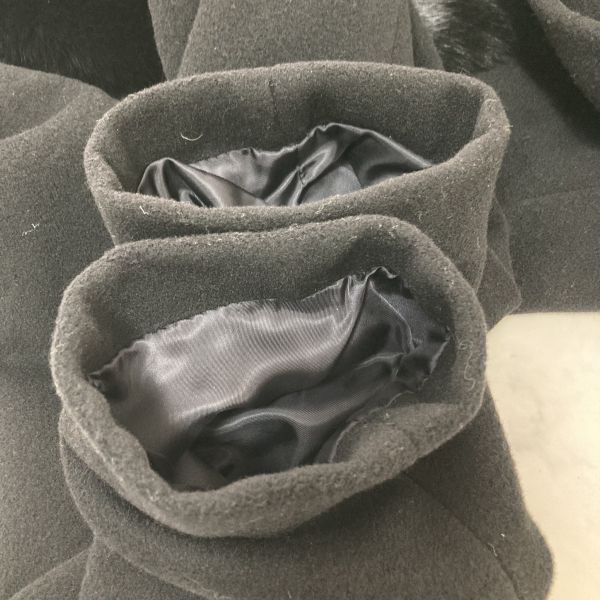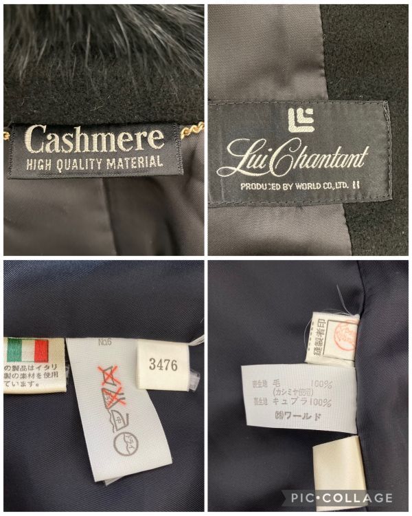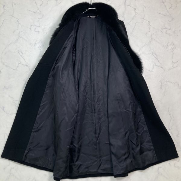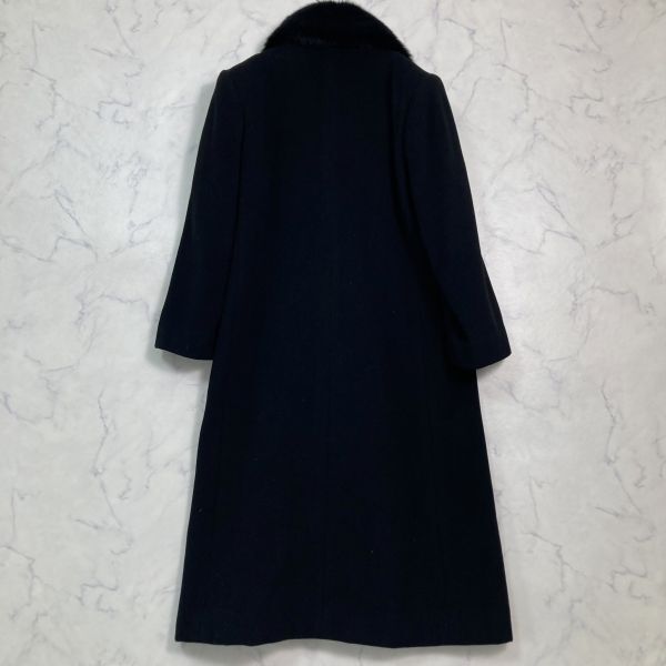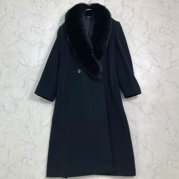 極美品 カシミヤ100%? ダブルチェスターコート ロングコート リアルファー Aライン レディースL~XL相当 黒 ブラック系 lui chantant