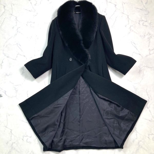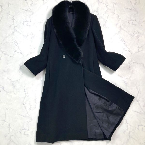 極美品 カシミヤ100%? ダブルチェスターコート ロングコート リアルファー Aライン