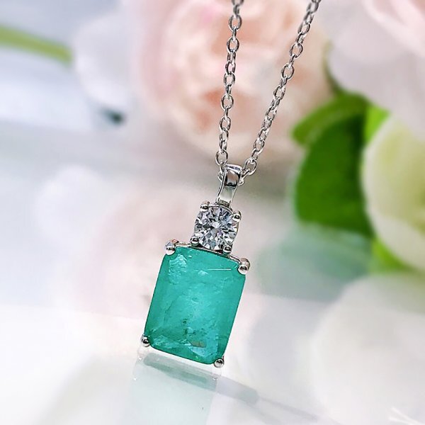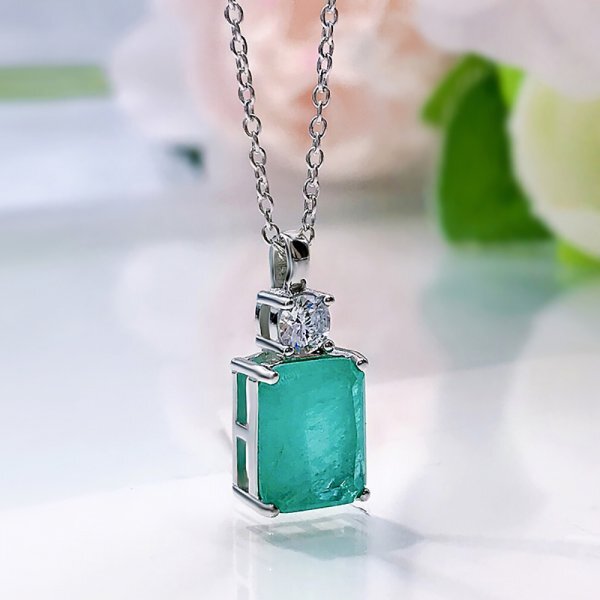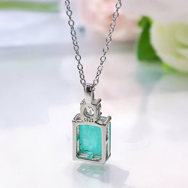 女性用シルバー925 パライバトルマリンペンダントネックレス、8×10mm