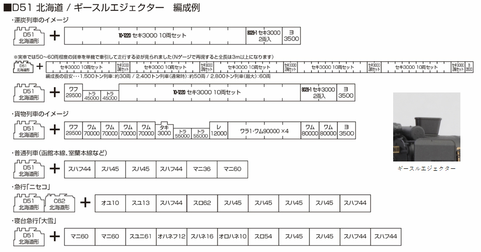 ・付属品…各製品とも:選択式ナンバープレート(北海道形:「320」「397」「467」「710」、重連用アーノルドカプラー、重連用ナックルカプラー、交換用ナックルカプラー