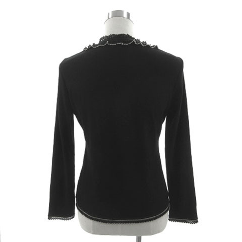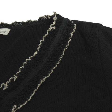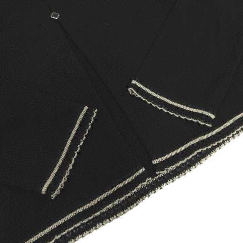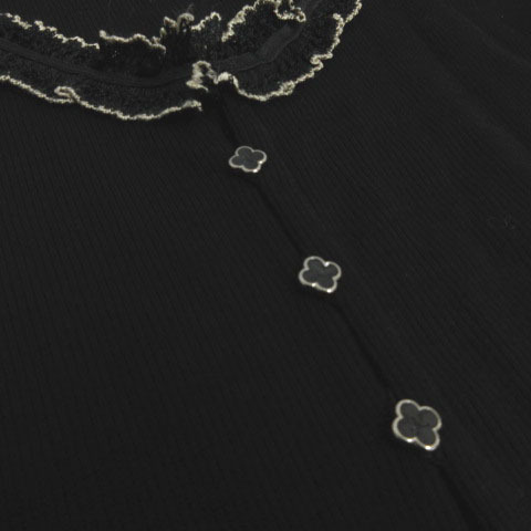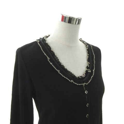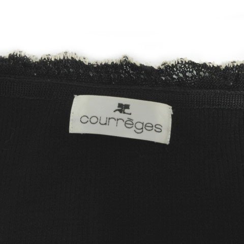 クレージュ courreges カーディガン ニット フリルレース切替え 長袖 花ボタン 日本製 ウール ブラック 黒 ベージュ 40 レディース
