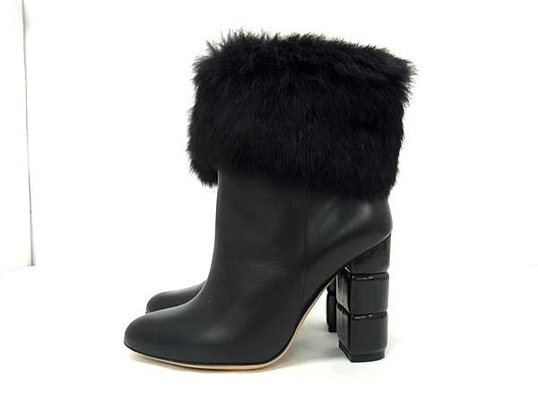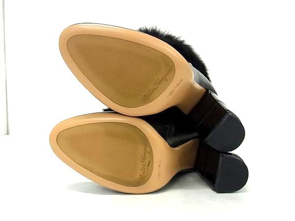 ■新品■未使用■ Salvatore Ferragamo フェラガモ レザー×ファー ショートブーツ 表記サイズ 5 (約22.5cm) 靴 ブラック系 FG1741
