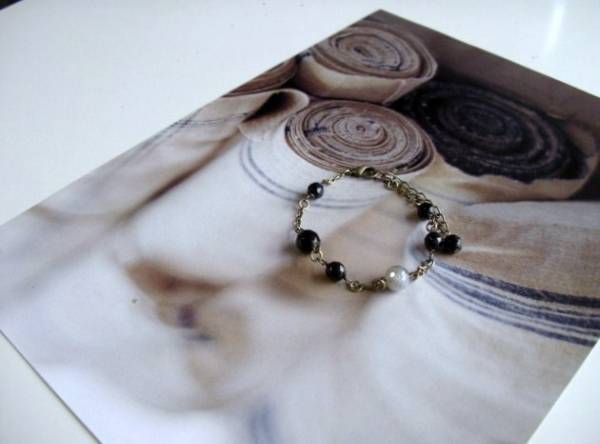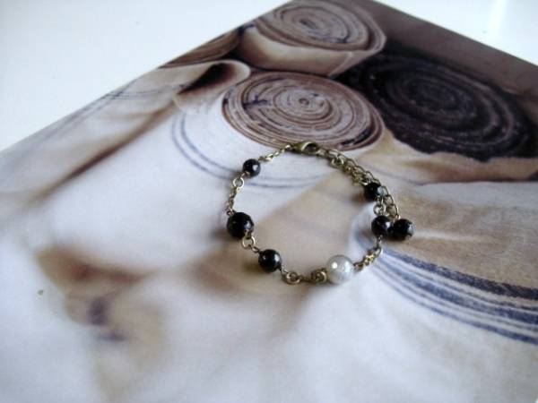 セシル・スタイル・・シリーズです♪恋する人・・シックなオニキスとラブラドライトのブレスレットです♪漆黒のオニキスに神秘的なラブラドライトの丸カットを合わせてロマンチックな表情です♪6ミリ、8ミリのラウンドカットのオニキスには8ミリのラブラドライトを合わせました♪長さは16センチ+アジャスター6センチで最長22センチ位です♪お揃いのネックレスも出品しています♪シンプルで飽きのこないいつまでも着けられるデザインを考えて作りました♪ハンドメイドをご理解頂いてノークレーム、ノーリターンでお願いします