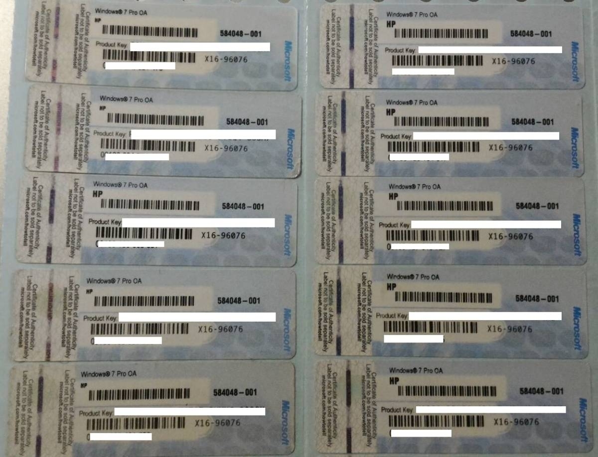 Windows 7 Pro OA HP プロダクトキーシール ((強い粘着力・10枚セット!!))