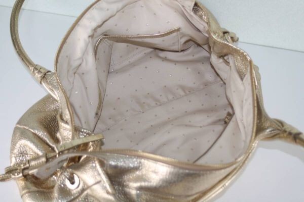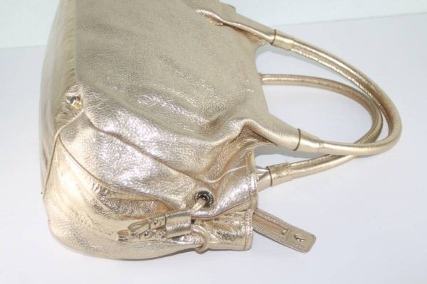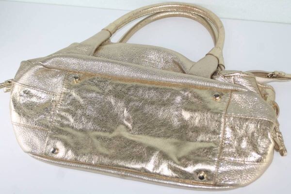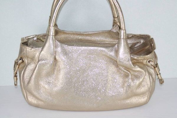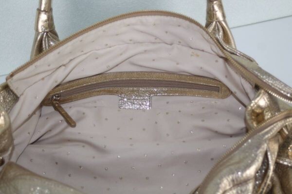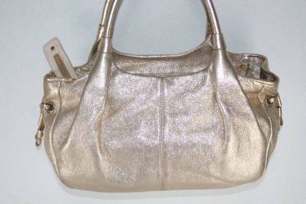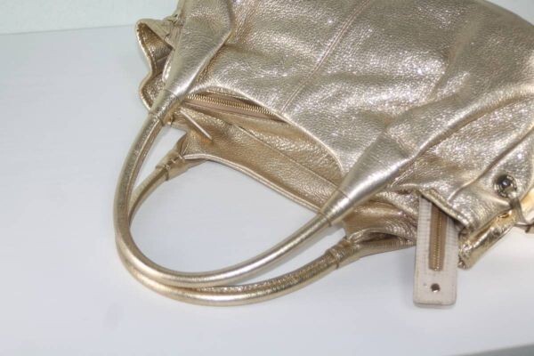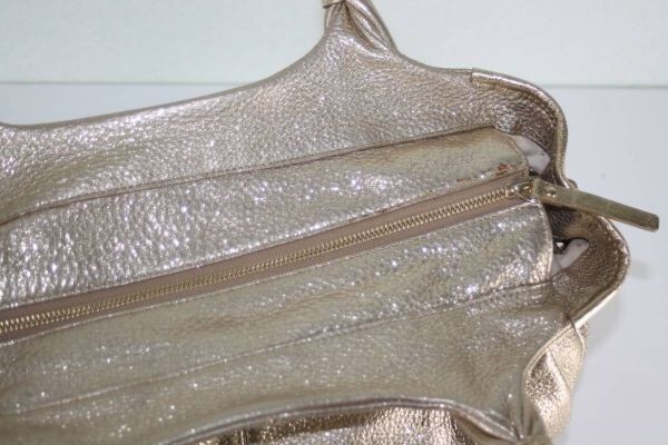 シャンパンゴールト色、メタリックレザーのファスナー式トートです。