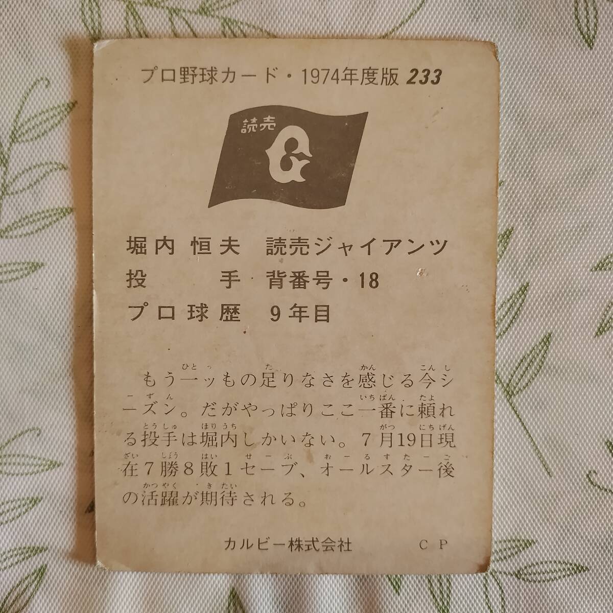 プロ野球カード 1974年度版 №233 「堀内恒夫 読売ジャイアンツ 投手 背番号18」 カルビー