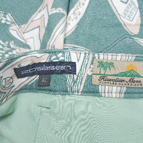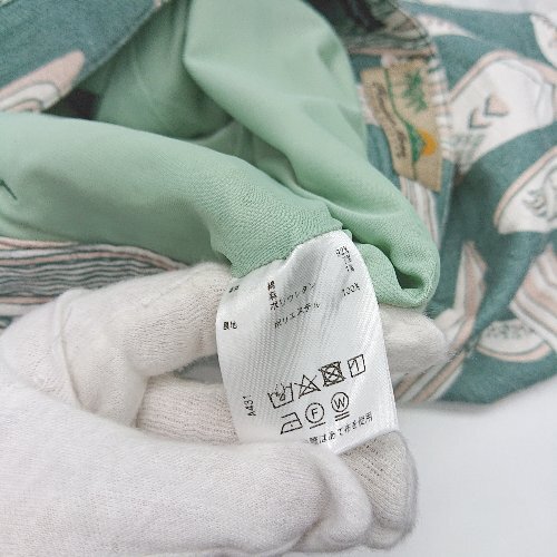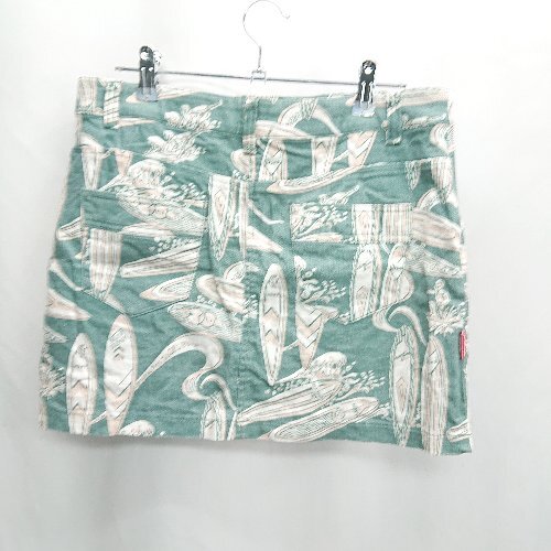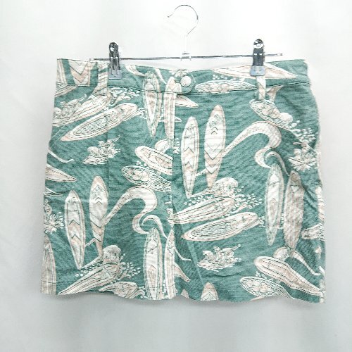 ◇ ⊂ Rosasen ロサーセン サーフ柄 インパンツ ミニ 台形 スカート サイズ42 グリーン系 レディース E