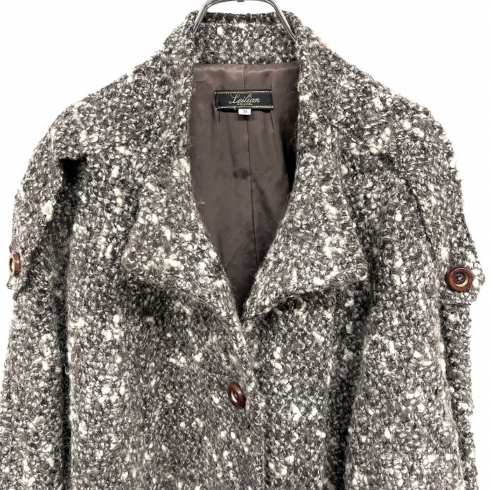 | 商品タイトル | レリアン Leilian 少し薄手 長毛 コート ボタン留め 長袖 毛×モヘアなど(裏地:キュプラ100%) M (9) ダークグレーブラウン レディース |
