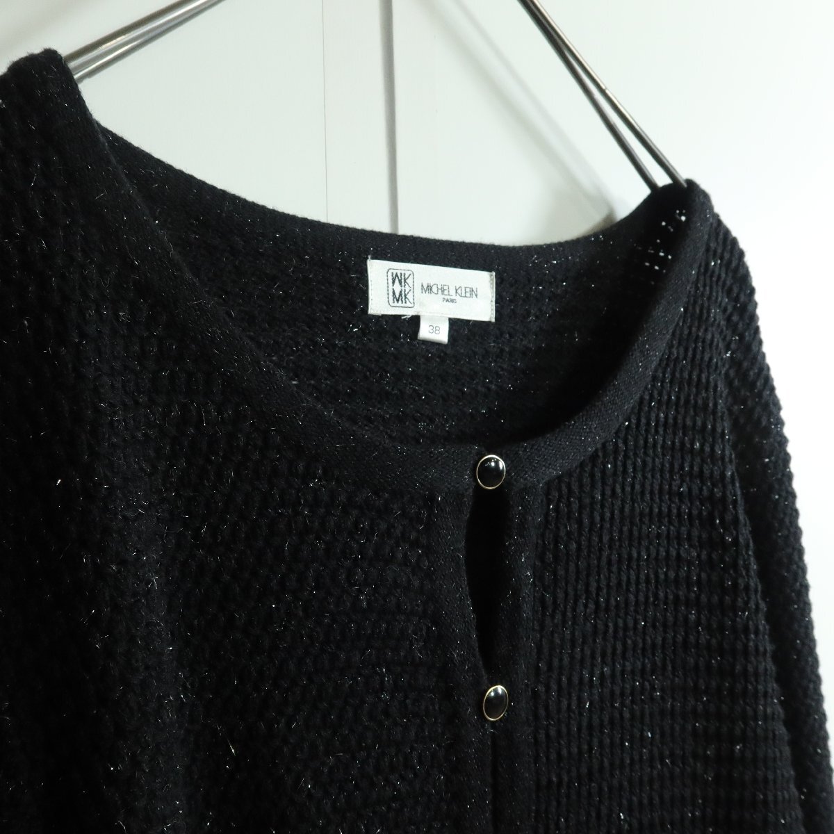 MICHEL KLEIN ミッシェル クラン★カーディガン長袖 サイズ38 ラメ感&パイピングが上品エレガント♪ 黒系*w8916