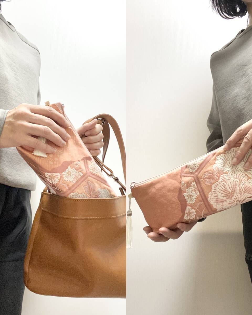 大人可愛いセレブポーチ帯リメイクポーチ【大きめ】化粧ポーチ マルチポーチマルチケース