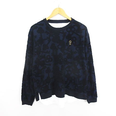 グラニフ graniph トレーナー スウェット 長袖 クルーネック レイヤード 鍵模様 ワッフル地 S ネイビー ※EKM メンズ