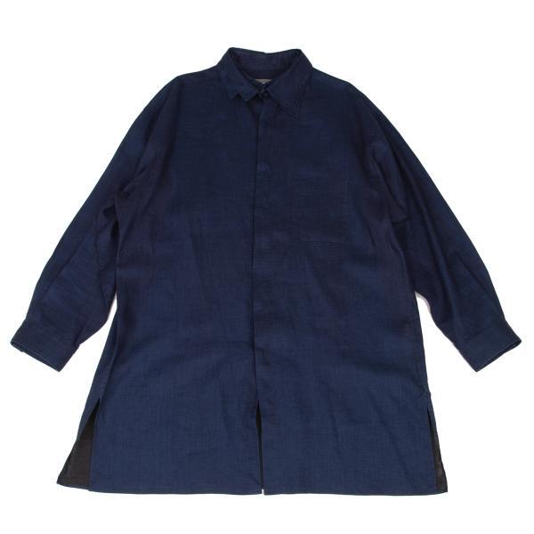 | ヨウジヤマモト プールオムYohji Yamamoto POUR HOMME インディゴリネンスペアカラーロングシャツ 紺3 |