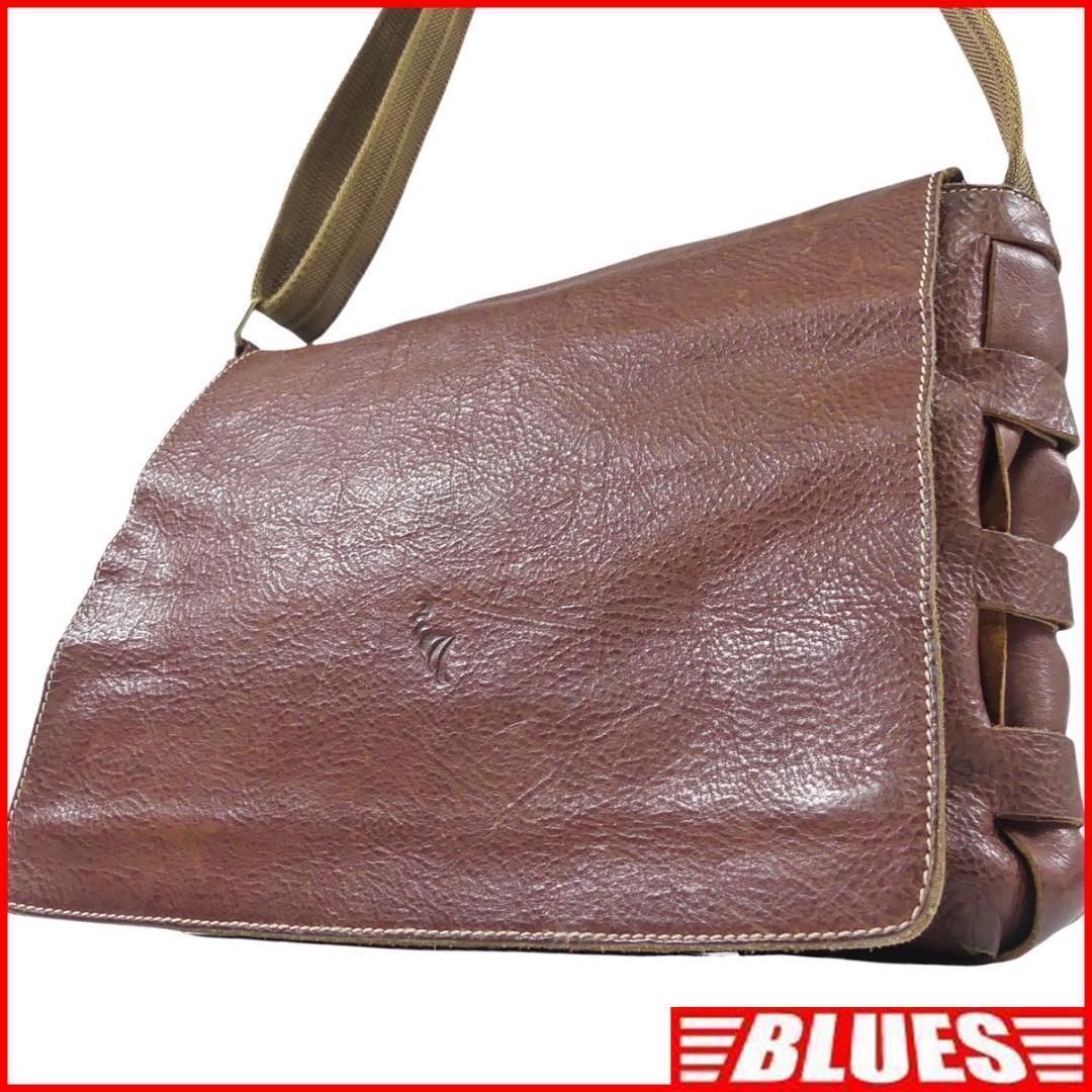 即決★PAUDY★オールレザーショルダーバッグ パウディー メンズ レディース 茶 フラップ 肩掛けカバン 斜め掛け メッセンジャーバッグ