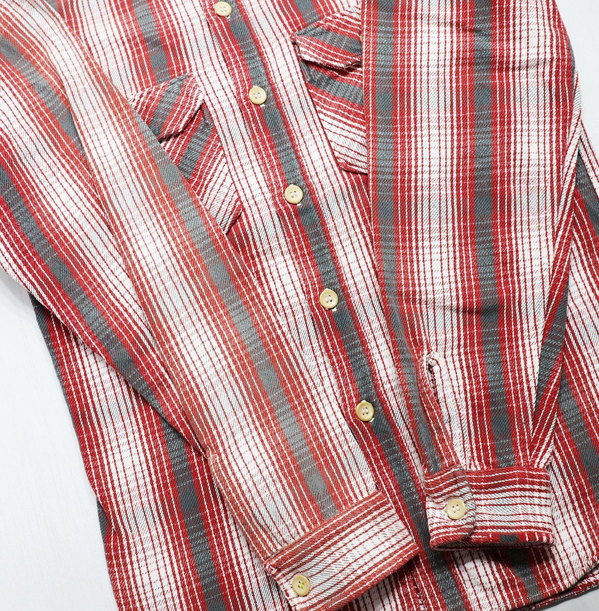 | ◆商品状態 | 使用感はありませんが、右肩から袖にかけて画像のようなヤケが見受けられます。着用による汚れやダメージはありません。 | |