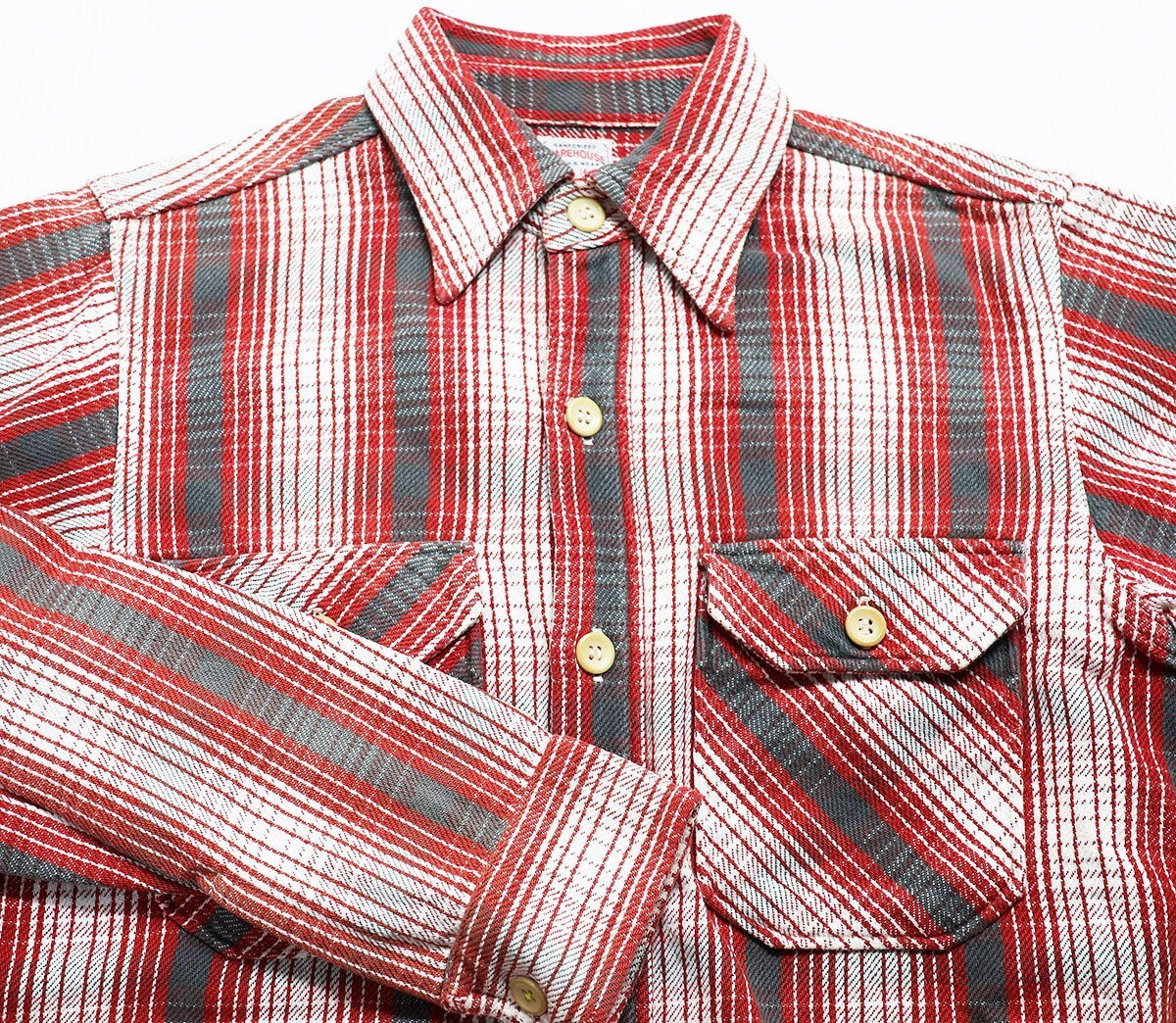 | ◆商品詳細 | こちらはウエアハウスのLot 3104 FLANNEL SHIRTS / フランネルシャツです。 旧式の力織機によって織り上げられた耳付きヘビーウェイトネル生地を使用した定番フランネルシャツ。丁寧に起毛させたフランネル生地は肉厚ながら柔らかい肌触りで保温性も備えています。 カラー:RED × OFF × BLACK 当店の取扱い商品はすべて厳重なチェックを重ねてから出品しておりますのでコピー商品や偽物は一切ありません。 万が一偽物だった場合は商品代や返送費などかかった費用全額返金いたします。安心してお買い求め下さい。 | |