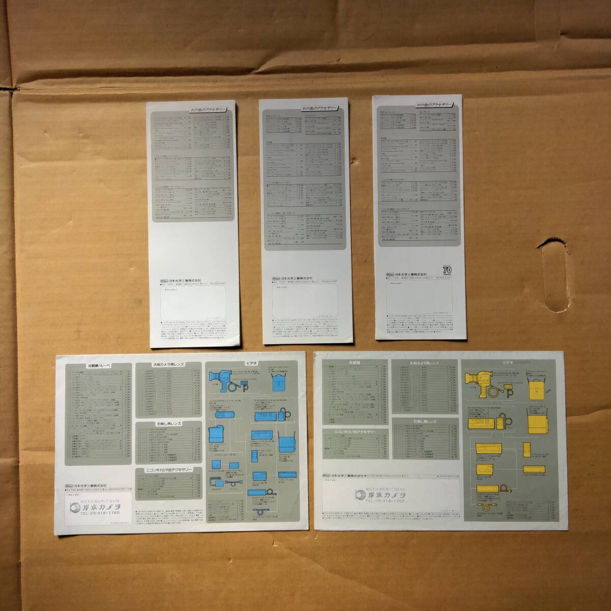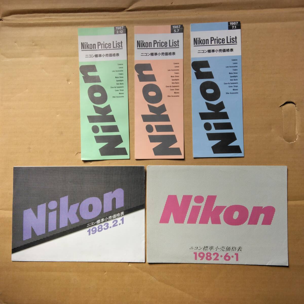 Nikon 標準小売価格表 5冊【82,83,87年カタログ】(ニコン 希少 コレクション カメラ レンズ)
