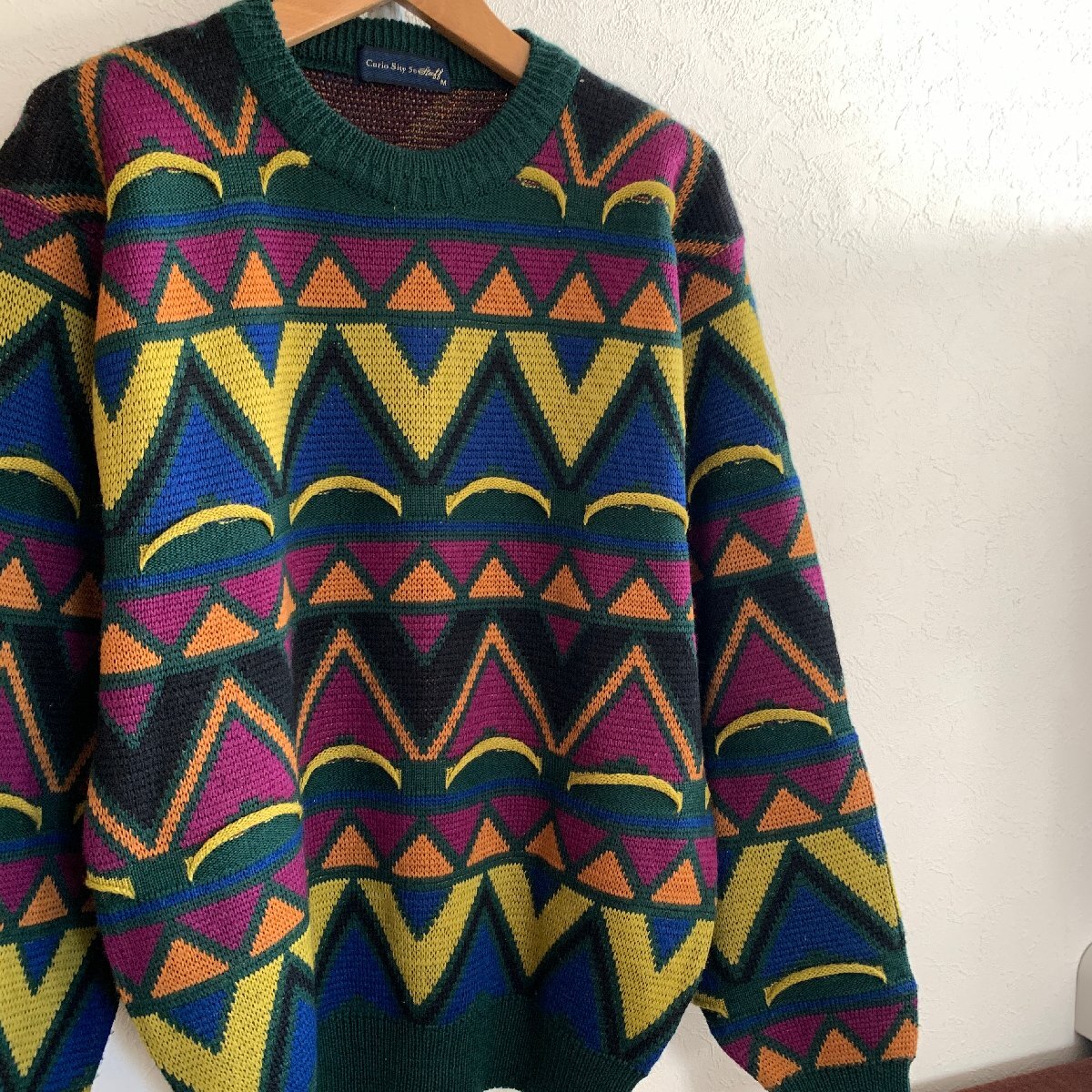 古着 クリオシティ 3D ニット セーター マルチカラー 日本製 クージー風 Used Clothing Curio Sity 5 Knit Sweater Japan Made COOGI