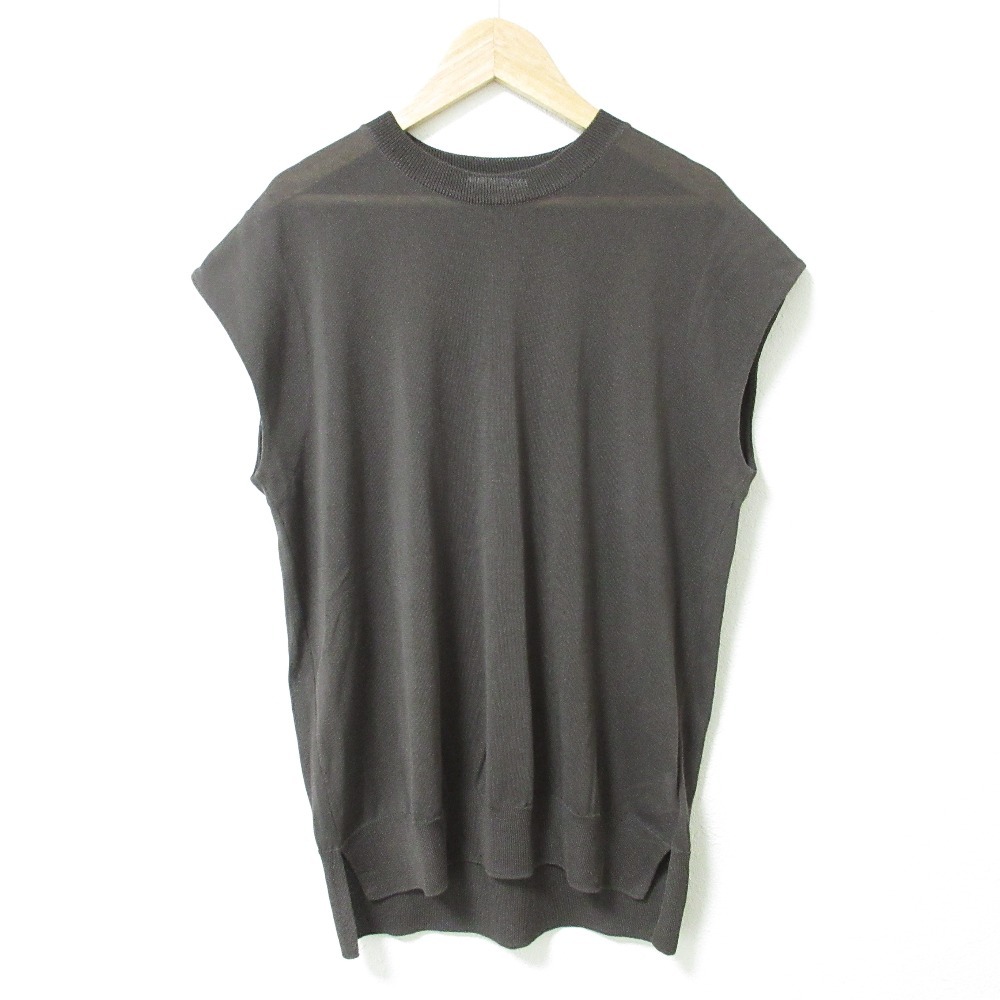 商品名:美品 22SS yori ヨリ クルーネック ノースリーブ フレンチスリーブ ハイゲージ シャーベットニット 38 ブラウン