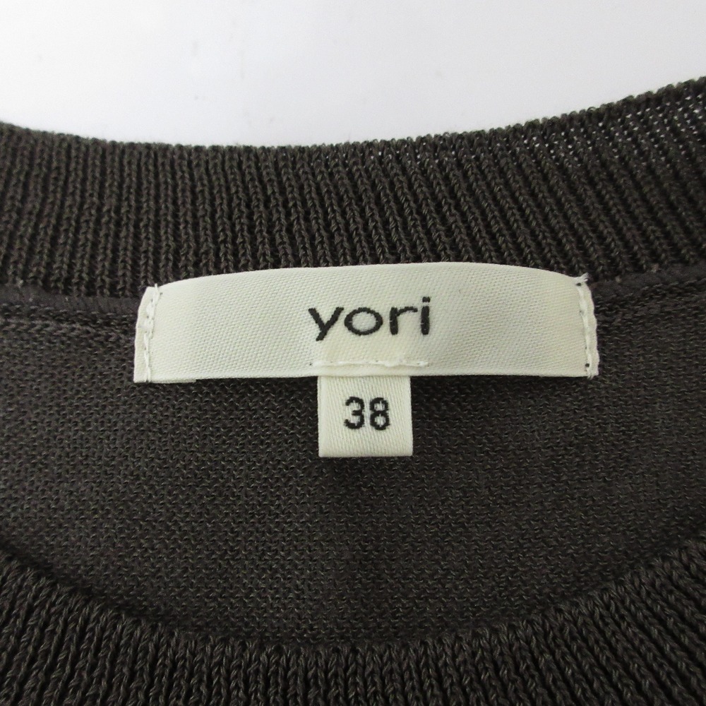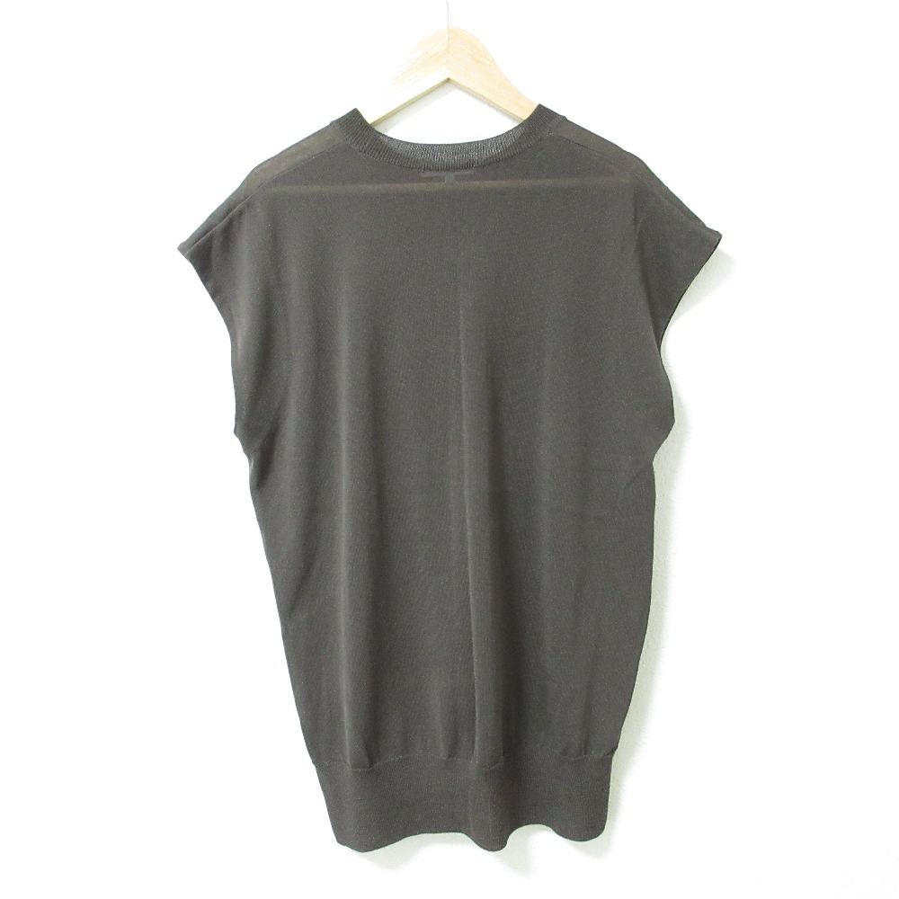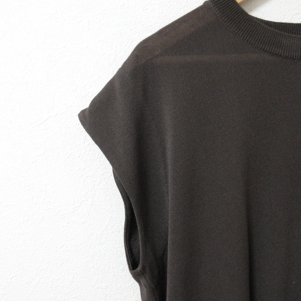 美品 22SS yori ヨリ クルーネック ノースリーブ フレンチスリーブ ハイゲージ シャーベットニット 38 ブラウン