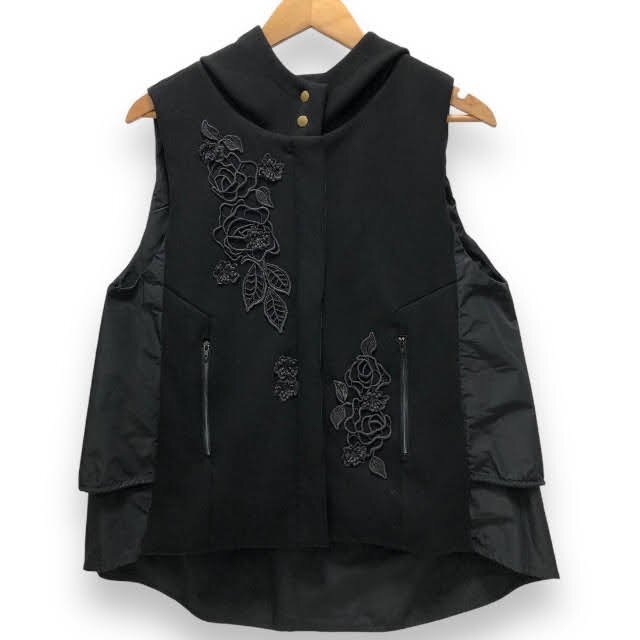 ▼美品 裸衣夢 らいむ 中綿 花柄 刺繍 ベスト 日本製 ブラック Fサイズ レディース 女性用 RC3385 |