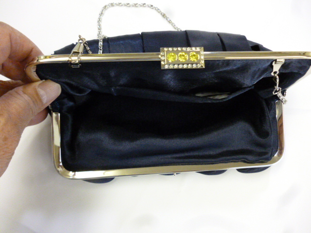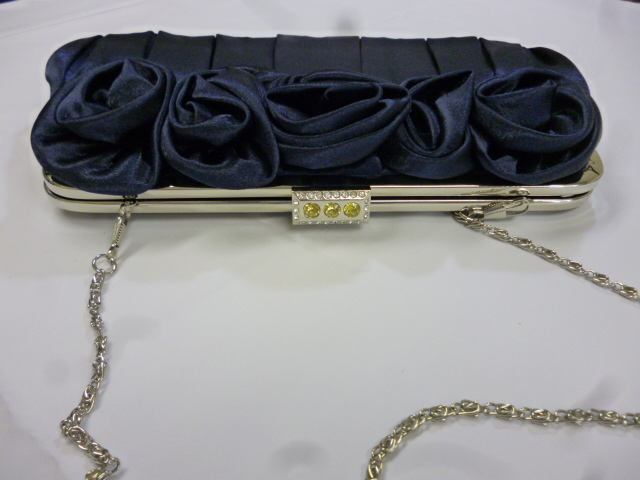★即決★クラッチバッグ・パーティー・結婚式・ローズの飾り・紺