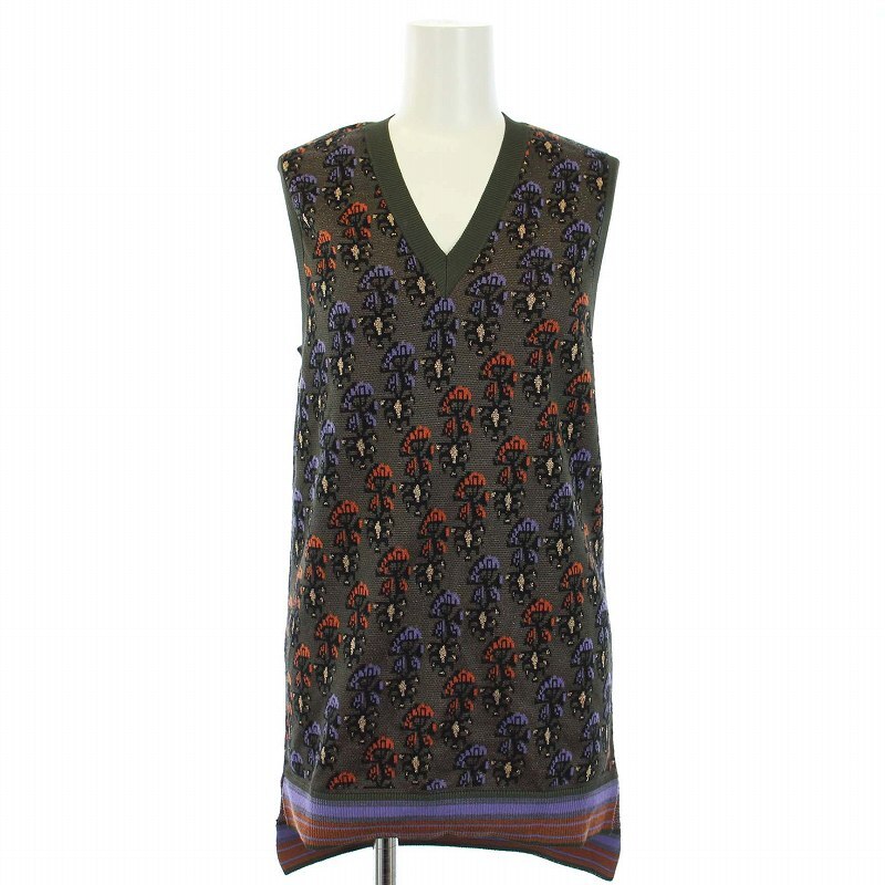ウェールズボナー WALES BONNER ベスト ニット 総柄 XS グレー オレンジ MS19KN05 /TK レディース