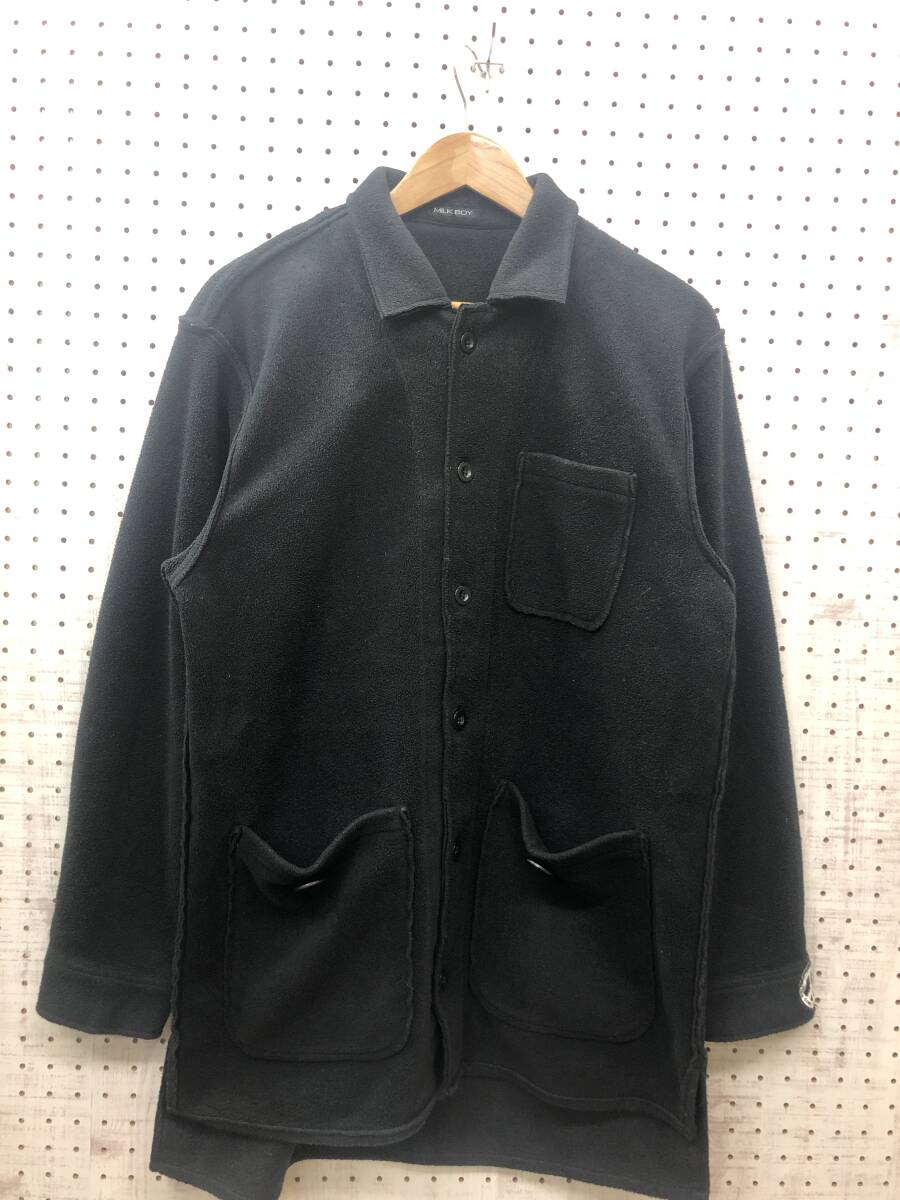 MILKBOY ミルクボーイ メンズ NEO GRANGE 90s 00s JAPANESE BRAND PUNK ROCK MODE ARCHIVE フリース カバーオール シャツジャケット 黒 切りっぱなし カットオフデザイン