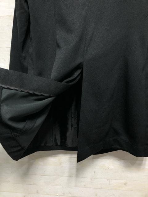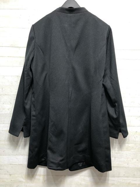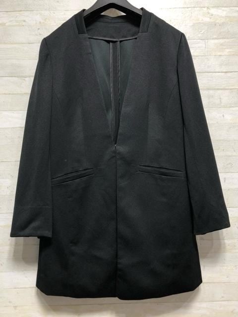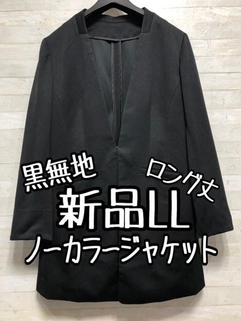 新品☆LL黒系無地やわらか素材のロング丈ノーカラージャケット〇A669