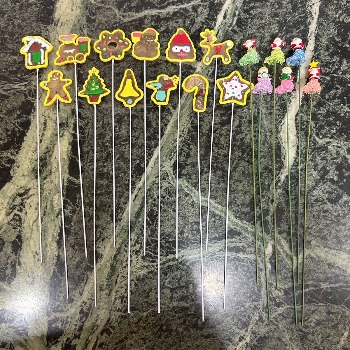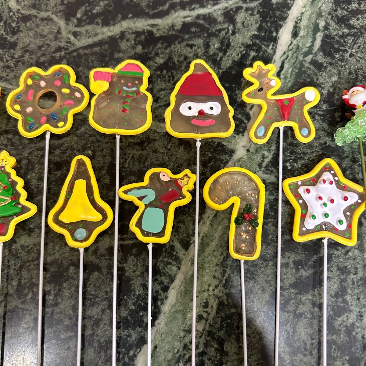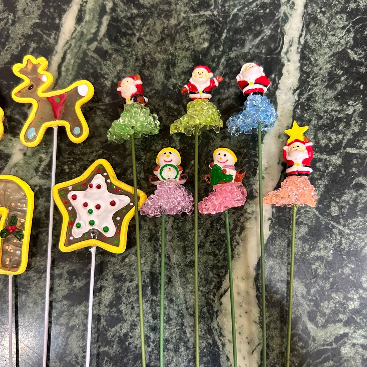 クリスマスピックのセットです。内部は針金なので(硬いですが)曲げられます。