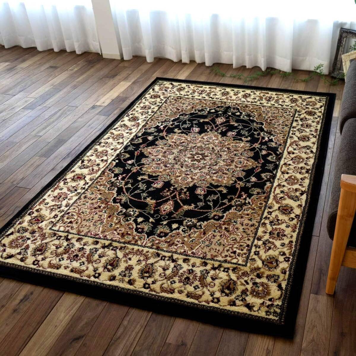 [送料込み] ラグ 絨毯 カーペット マット 133x190 1.5畳 ペルシャ風 ブラック ウィルトン織 トルコ メダリオン 高級 インテリア リビング