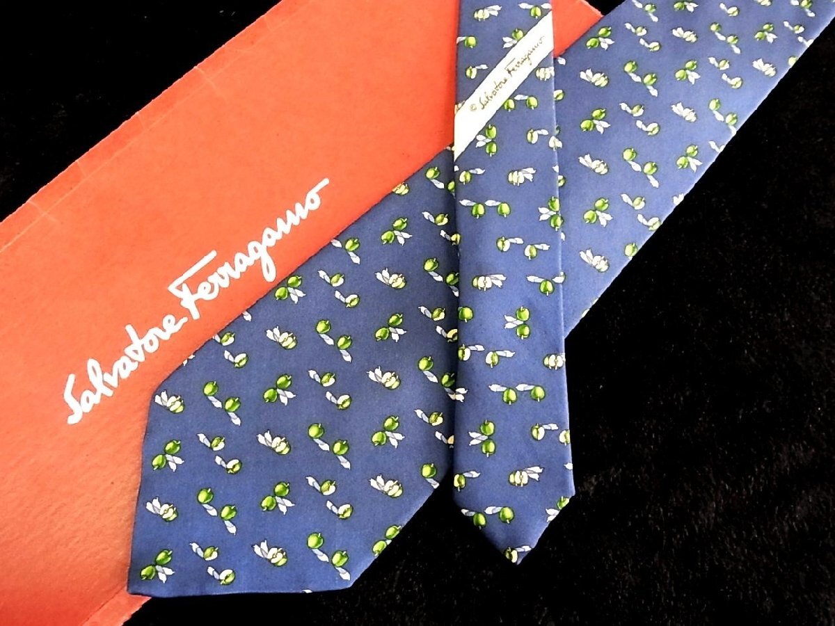 ♪今週の特売980円~♪2148♪状態並品【FERRAGAMO】フェラガモ【リンゴ 果物 フルーツ 柄】ネクタイ♪