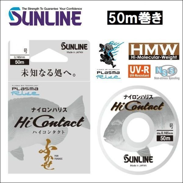 サンライン ハイコンタクト 2号 50m巻き 国産 日本製ナイロン ハリス 道糸 幹糸 磯用 ライン
