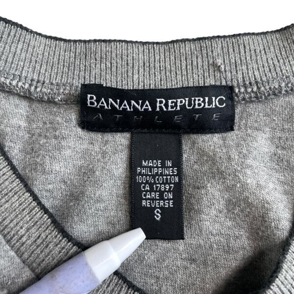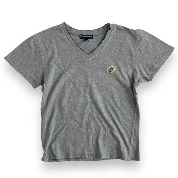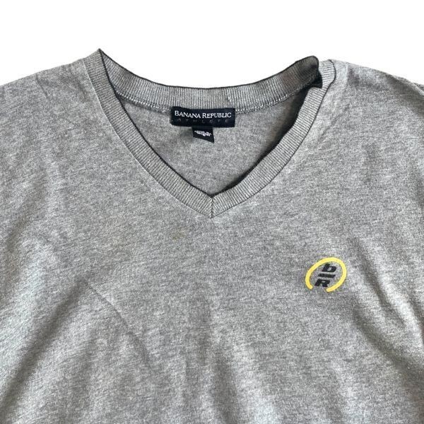 希少 90's BANANA REPUBLIC ATHLETE バナナリパブリック アスリート Vネック 半袖 ロゴ Tシャツ S レディース グレー 古着 カットソー