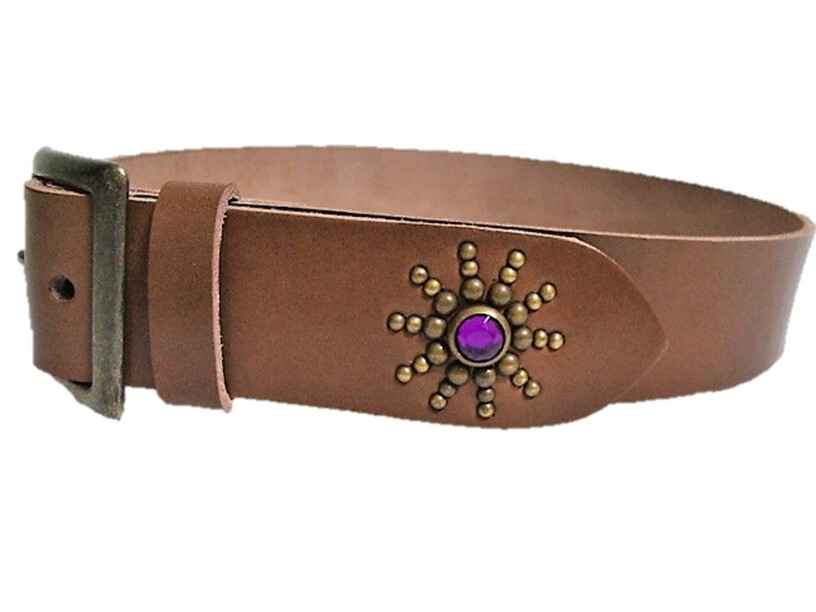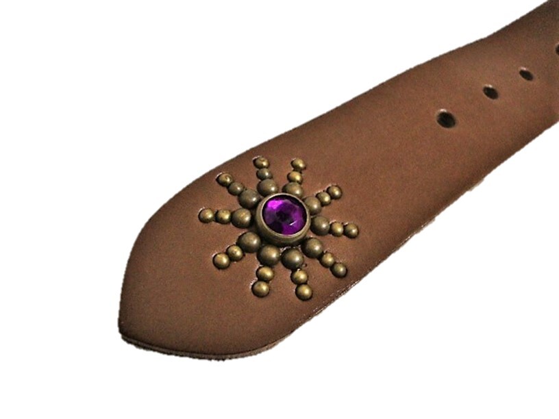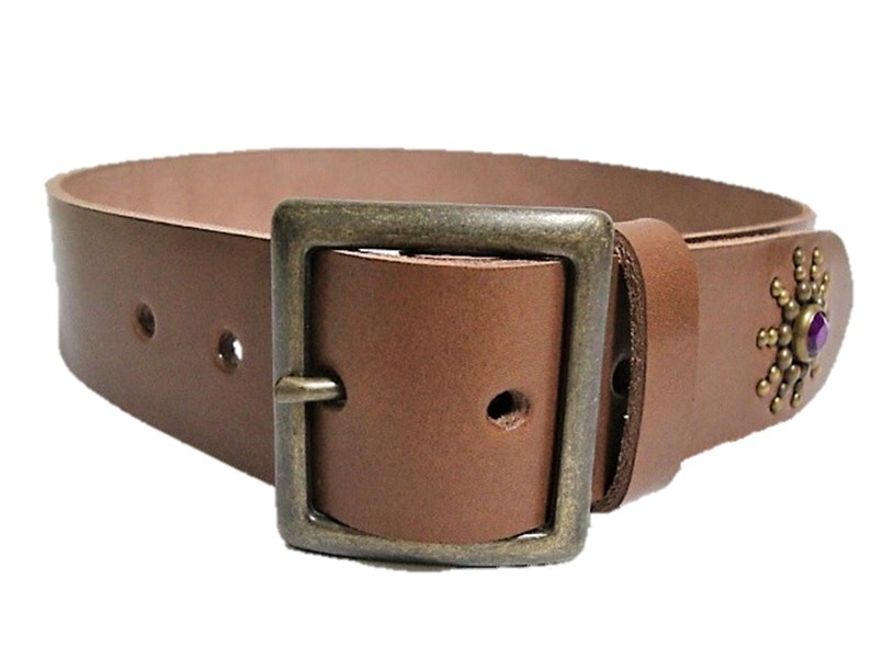 栃木レザー エンドオンリースタッズベルト チョコ(パープルスポッツ)一枚革 ヴィンテージタイプ