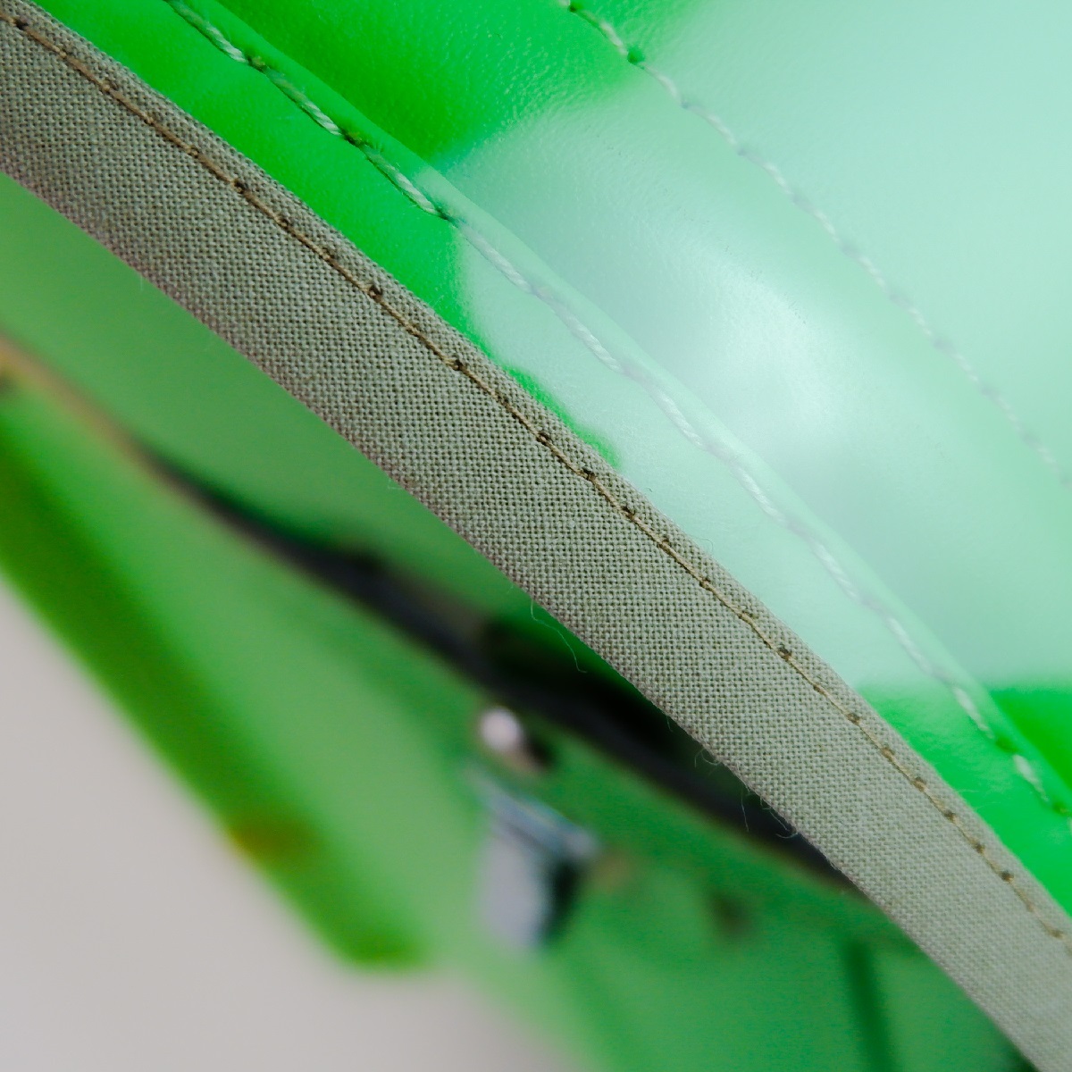 • 直営のファクトリー(岩手県)で丁寧に縫製しています。丸いラインがハンドメイドの証しです。内がわもバイアステープでしっかり補強して、丈夫に仕立てました。