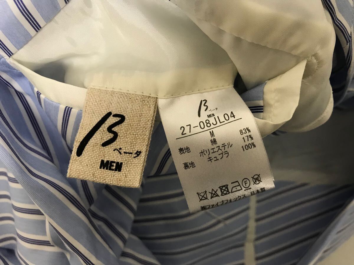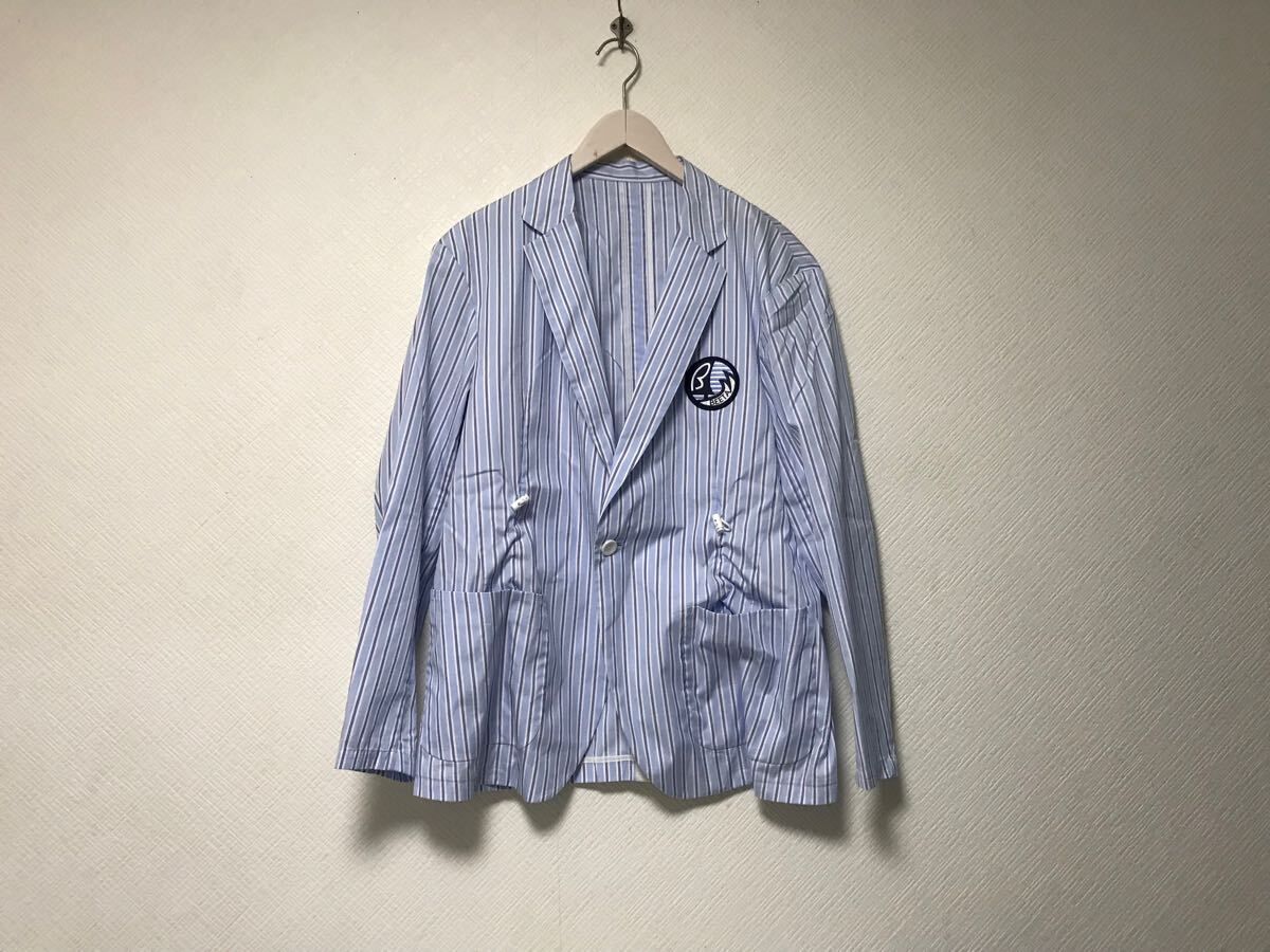 【商品名】本物ベータメンβMEN BEETAコットンストライプ柄テーラードジャケットメンズサーフアメカジミリタリーストリートスケーターワークビジネススーツモードゴルフドレス青ブルー白ホワイト日本製M